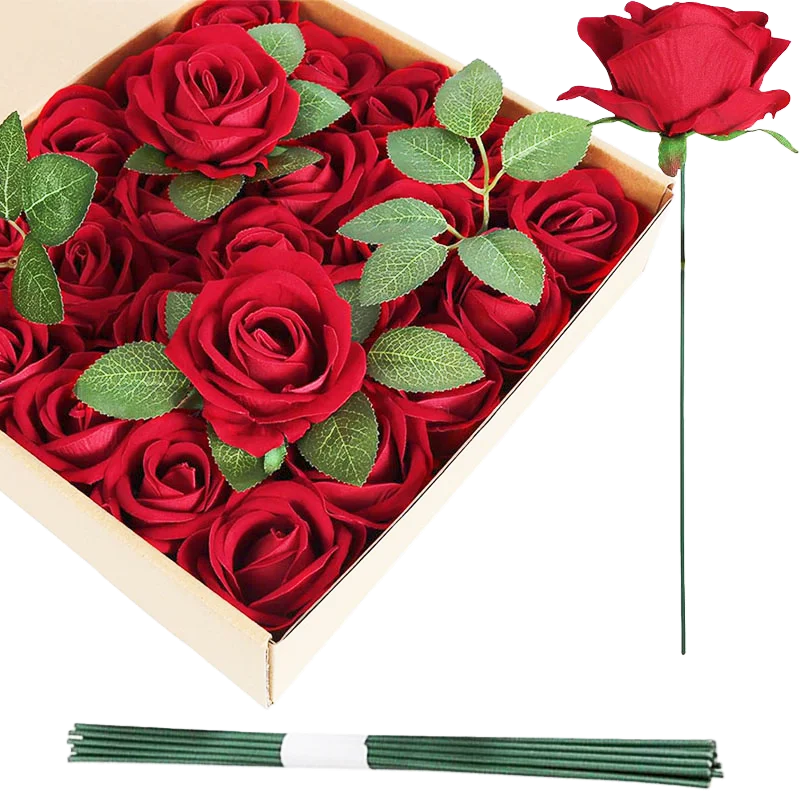 Step into a world of elegance with these beautifully crafted velvet roses. Picture yourself creating unforgettable floral arrangements without the fuss of fresh flowers, leaving more time for your special moments. Their realistic design and rich color bring a touch of luxury that elevates any event or space effortlessly. Whether as a thoughtful gift or a decorative centerpiece, these roses will inspire confidence in your decorating skills. With easy shaping and versatile uses, you'll find countless ways to incorporate them into your aesthetic vision. Experience the charm and durability of these exquisite artificial roses today.