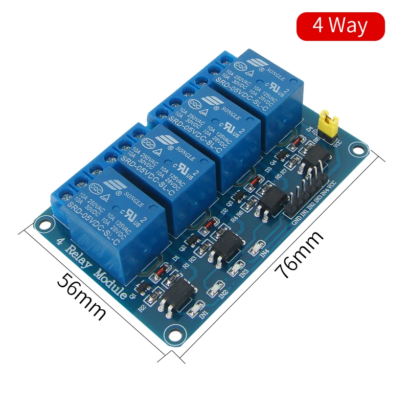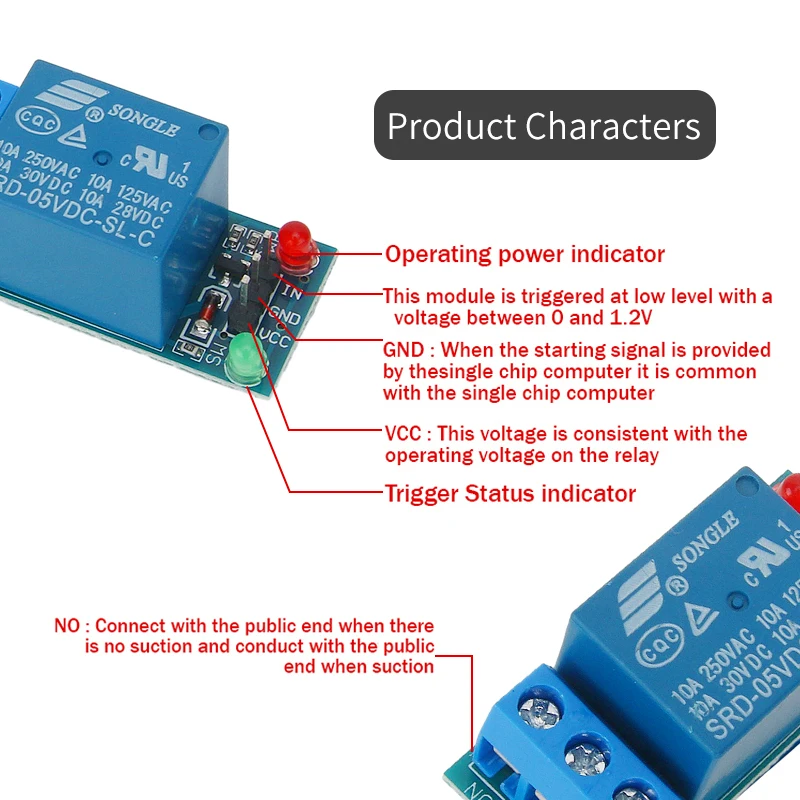 - Uses high-quality electromagnetic relays with SPDT contacts, each having a common terminal, normally open, and normally closed ends.