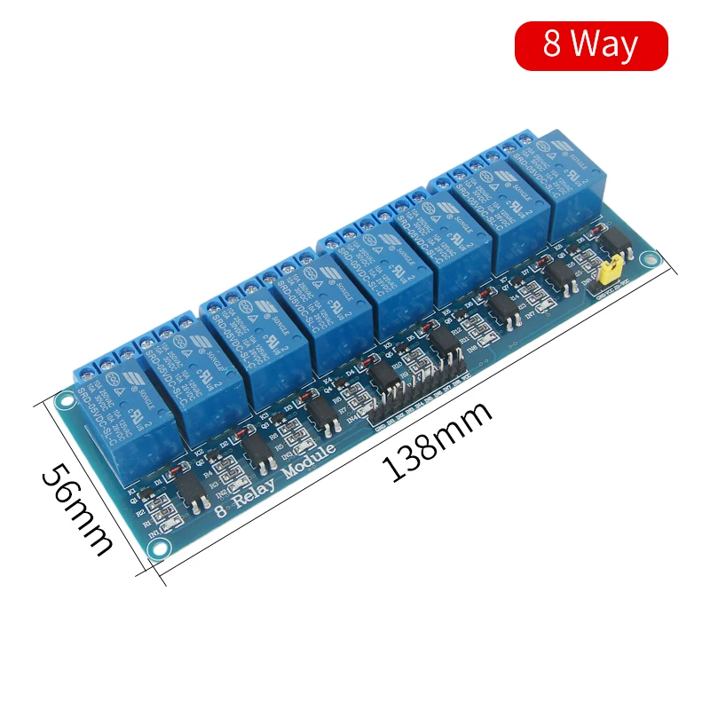Experience seamless automation with this high-quality relay module, designed to elevate your control systems. Its sleek rectangular design features luminous blue electromagnetic relays organized in a precise row, offering an aesthetically pleasing and professional look. The modules are equipped with four sturdy screw holes for secure installation, with 3.1mm diameters ensuring easy mounting. The modular layout, combined with clear labeling and vibrant color contrasts—blue relays on a green or black PCB—provides an intuitive and organized setup. The built-in LED indicators glow when relays activate, giving immediate visual confirmation of operation. Whether for industrial automation or DIY projects, this module combines technical precision with an attractive, modern aesthetic.
