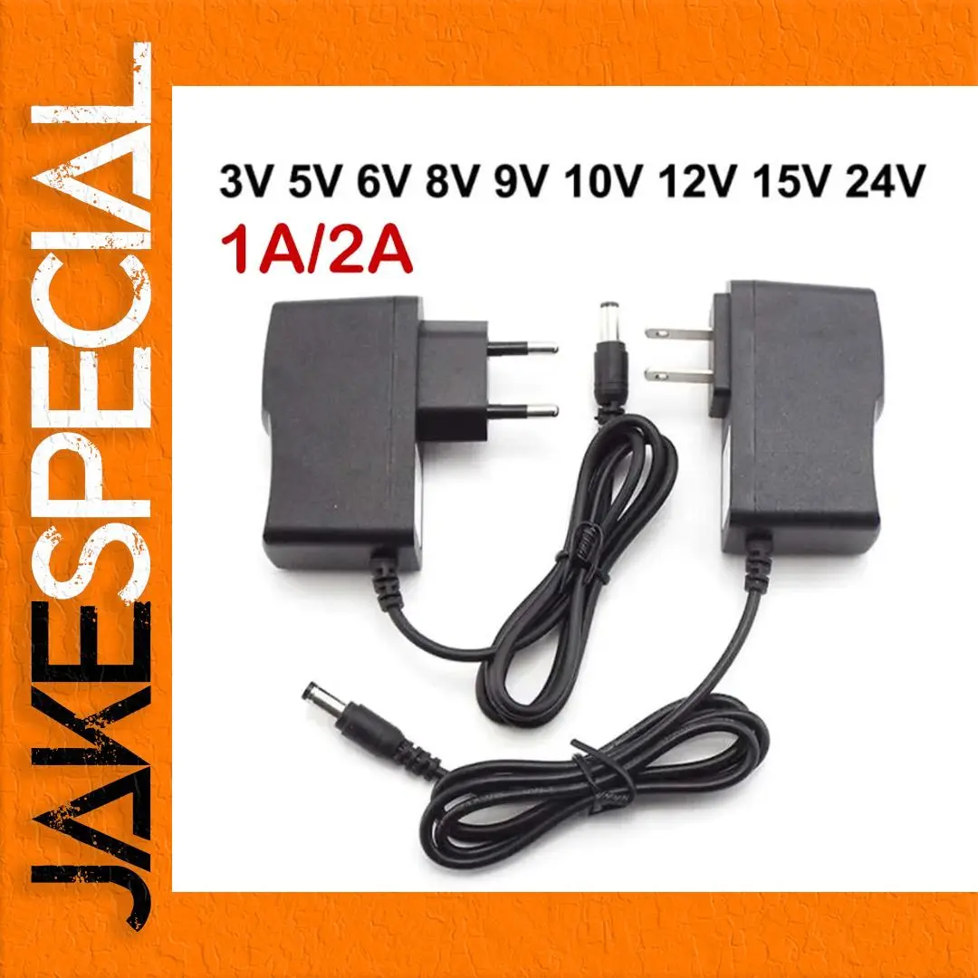 Designed with a sleek, minimalist aesthetic, this power supply features a rectangular shape with gently rounded edges and a matte black finish. Its simple yet modern design emphasizes functionality and style, making it suitable for both technical and professional environments. The uniform surface and streamlined appearance contribute to its high-quality visual impression, ensuring durability and elegance. It supports a wide input voltage range from 100V to 240V AC at 50/60Hz, making it adaptable worldwide. Available with EU or US plugs, this device provides multiple DC output voltages—3V, 5V, 6V, 8V, 9V, 10V, 12V, 15V, and 24V—each capable of delivering 1A or 2A, with a maximum power output of 24W. Its design prioritizes safety features such as overload, short circuit, and over-temperature protections, ensuring reliable operation over time.