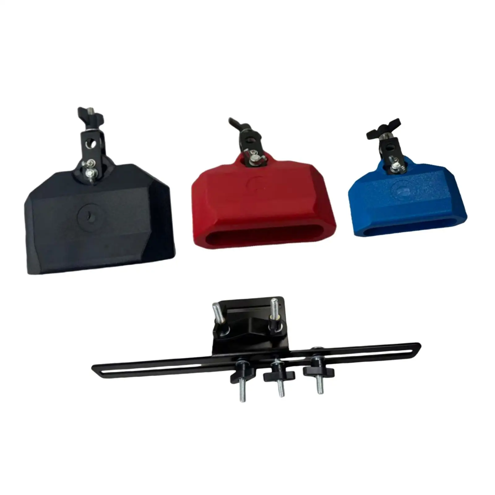Immerse yourself in dynamic musical expression with this set of three cowbells, designed for professional performance and practice. Crafted from durable ABS material, these cowbells produce bright, crisp sounds with natural resonance, perfect for Latin, jazz, or festival performances. Each bell measures 4″, 5″, and 6″, offering tonal variety that elevates any rhythm. Their ridged design adds aesthetic appeal, while the mounting rod clamp allows quick, secure attachment to cymbal stands or drum racks. With versatile color options, you can match your style and setup seamlessly. This complete set brings reliability, excellent sound quality, and visual vibrancy to your percussion collection, whether on stage or in the studio.