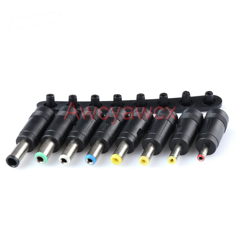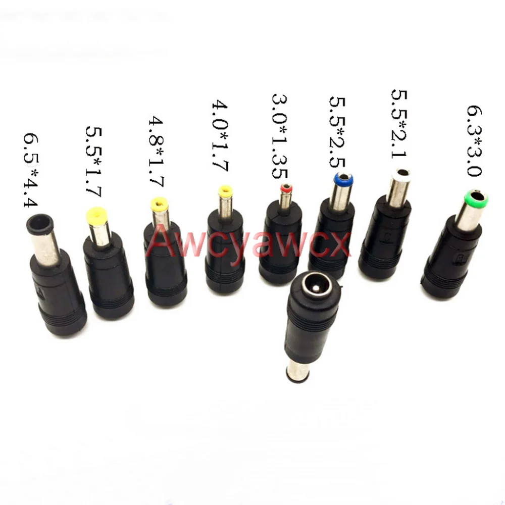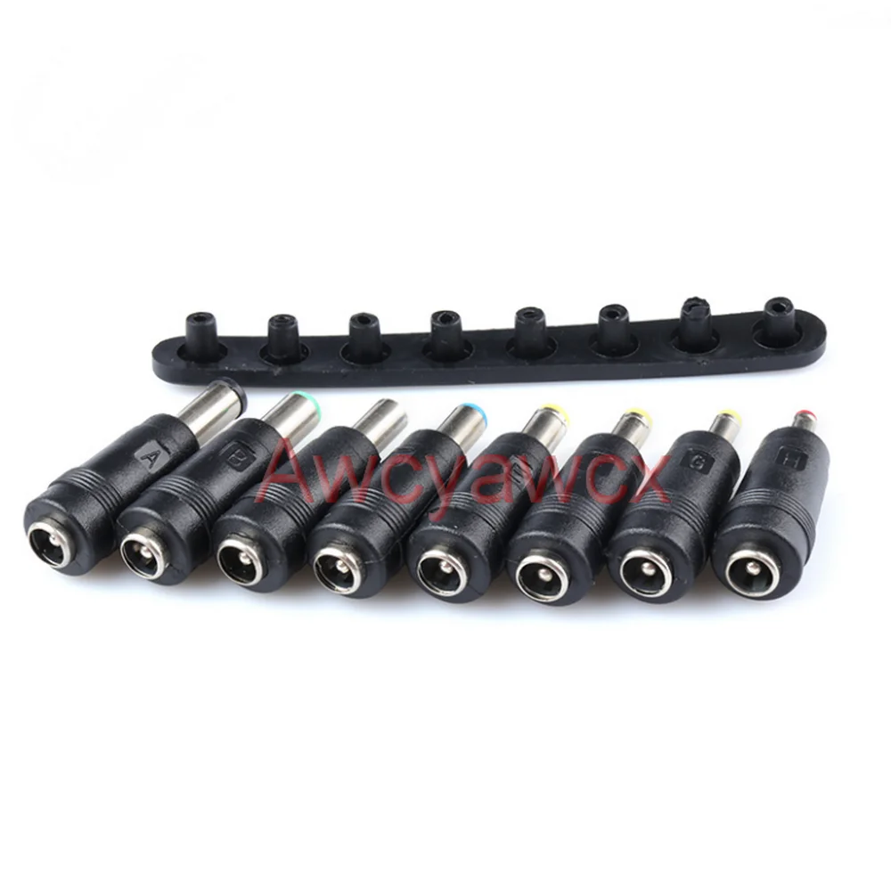 Ensure versatile power connectivity with this set of 8 DC adapter tips, featuring a 5.5mm x 2.1mm female connector compatible with brands like HP, Asus, Sony, Samsung, Acer, Dell, NEC, Toshiba, and more. The tips include male connectors in sizes 3.5mm x 1.35mm, 4.0mm x 1.7mm, 4.8mm x 1.7mm, 5.5mm x 1.7mm, 5.5mm x 2.5mm, 6.3mm x 3.0mm, and 6.5mm x 3.4mm with pin, providing a broad range of options for various devices. Crafted for durability with a sleek black plastic holder featuring ribbed grips, these tips allow for easy organization and reliable connection across multiple applications. Ideal for replacing or extending power connections, ensuring your electronics stay powered up with confidence.