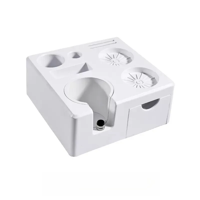 Experience a sleek, professional setup with this well-designed 9-in-1 espresso coffee tamp station. Crafted to enhance your coffee brewing routine, it accommodates 51mm, 54mm, and 58mm portafilters, making it compatible with a wide range of espresso machines. Its innovative multi-compartment trays, available in crisp white and classic black, keep your accessories organized—perfect for home baristas or professional baristas seeking efficiency and style. The station's sturdy construction and modern aesthetic seamlessly blend function with elegance, creating a clean and organized workspace. Imagine having all essential tools at your fingertips, ready for a flawless espresso shot every time. This station invites you to elevate your coffee experience with practicality and flair.