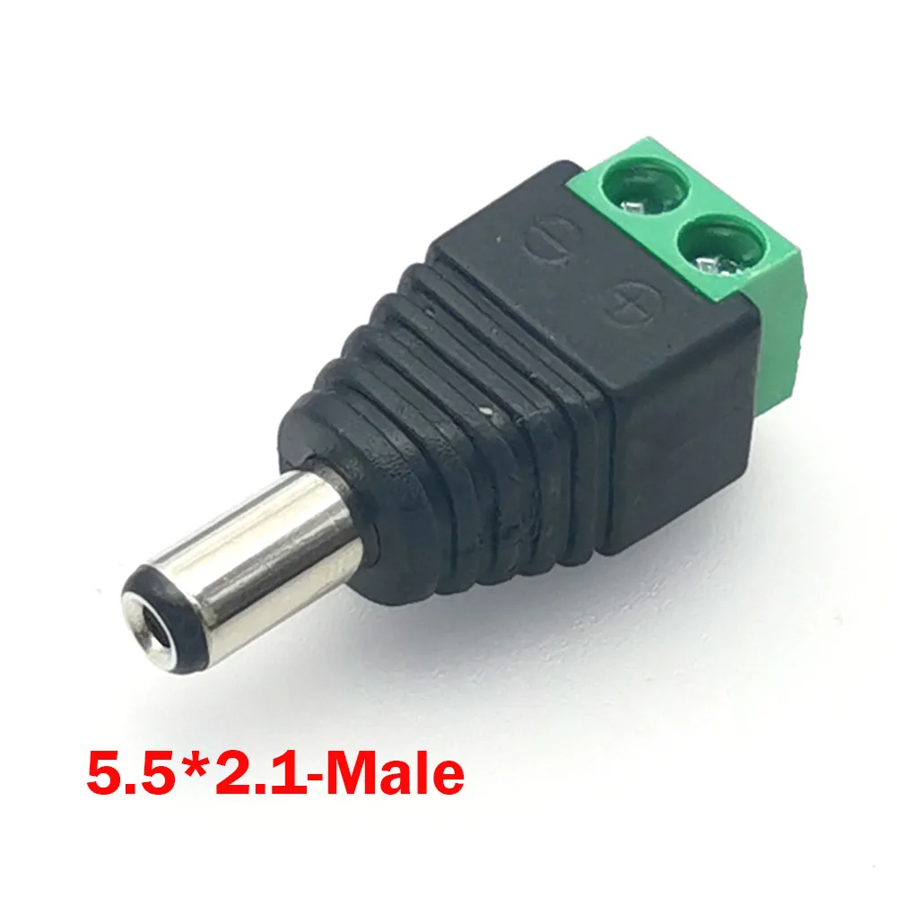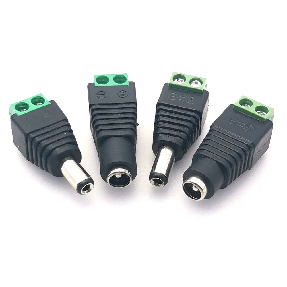 Enhance your power connections with this set of five pairs of durable DC connectors, featuring both female and male types in dimensions 5.5×2.1mm and 2.5×5.5mm. Designed for versatility, these connectors support power supplies of 5V, 12V, 20V, and 30V, making them ideal for LED strips, CCTV cameras, and other electronic devices. Their sleek black plastic housings with textured, ribbed surfaces provide a secure grip, while the green terminal blocks offer easy wiring. Available in distinct variants B-5.5-2.5 and A-5.5-2.1, these connectors combine reliable performance with a professional, industrial aesthetic.