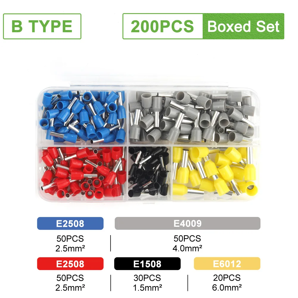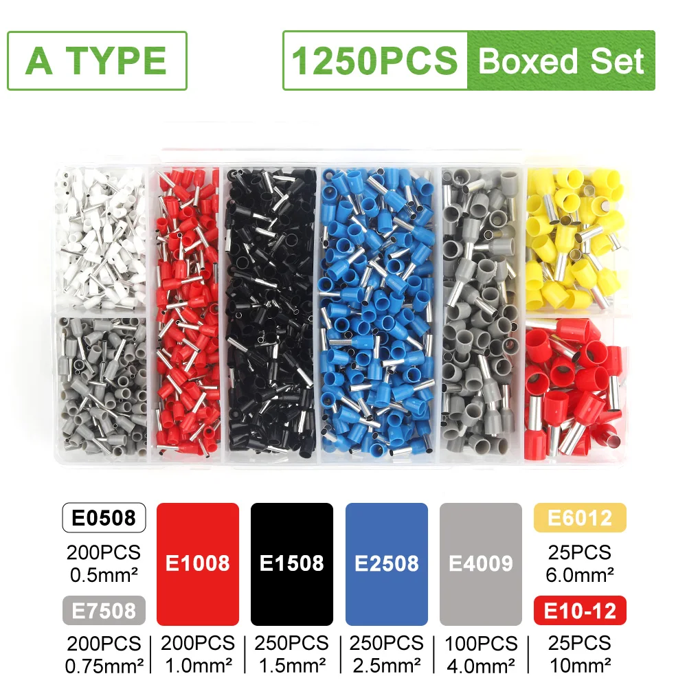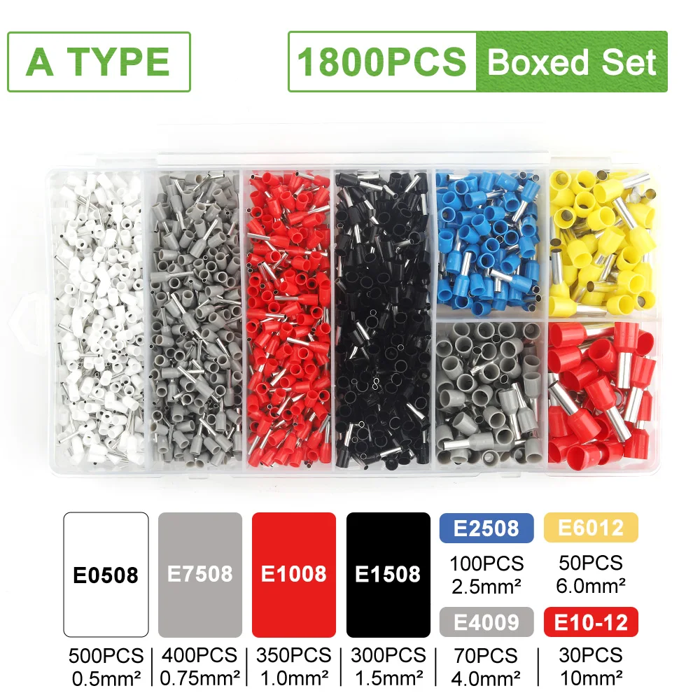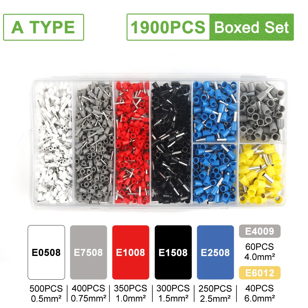 - This boxed set offers between 200 and 1900 insulated ferrule crimp terminals, suitable for various wiring applications, providing an extensive supply for multiple projects or ongoing tasks.