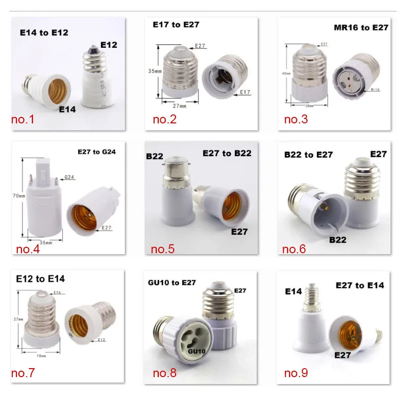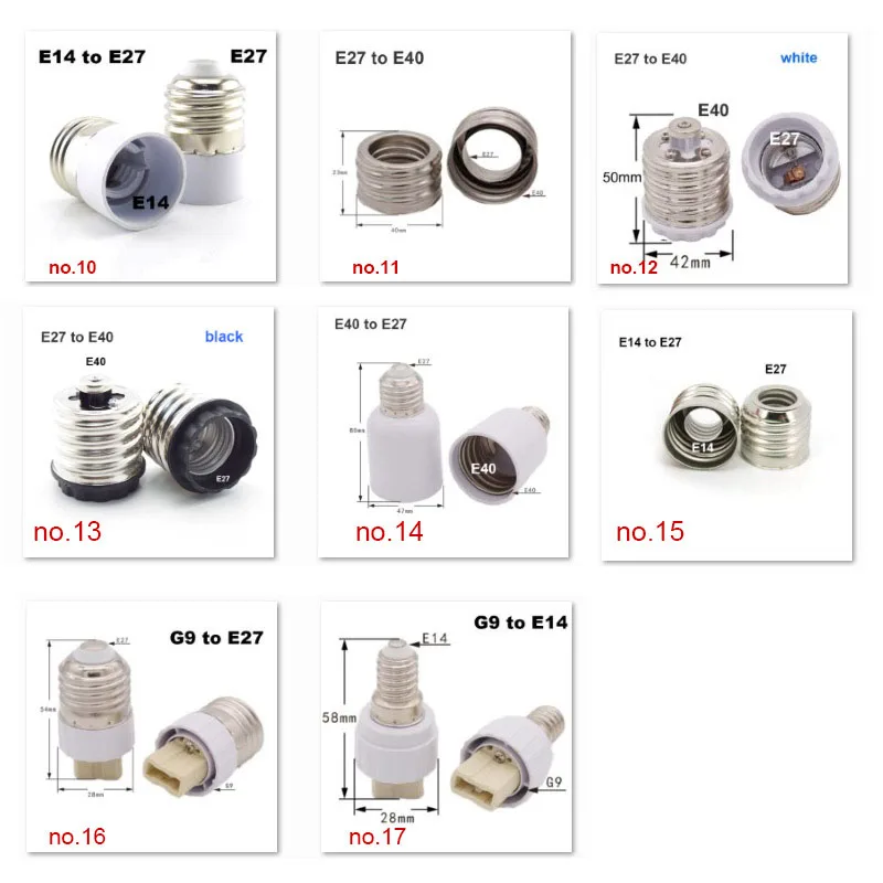 Upgrade your lighting system effortlessly with this durable, versatile lamp base adapter collection. Perfectly suited for various bulbs and sockets, they combine practicality with sleek aesthetics. Thanks to their robust design and multiple compatibility options, these adapters ensure a stable and safe connection for home or professional use. Whether you're replacing an old fixture or customizing your lighting setup, these adapters are a reliable choice. Their compact size, ease of installation, and high-temperature resistance guarantee long-lasting performance. Invest now to improve your lighting efficiency and flexibility with this essential accessory suitable for numerous electrical fixtures and bulb types.