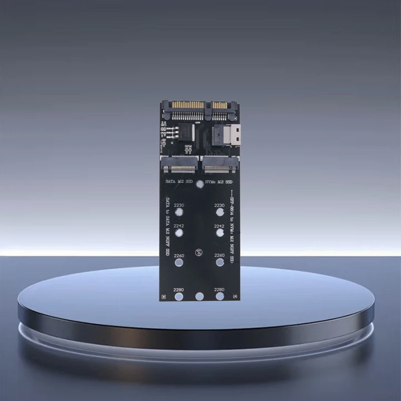 - Offers dual interface options—connects via standard 22-pin or SFF-8654 slots—for wide compatibility with different motherboard interfaces.