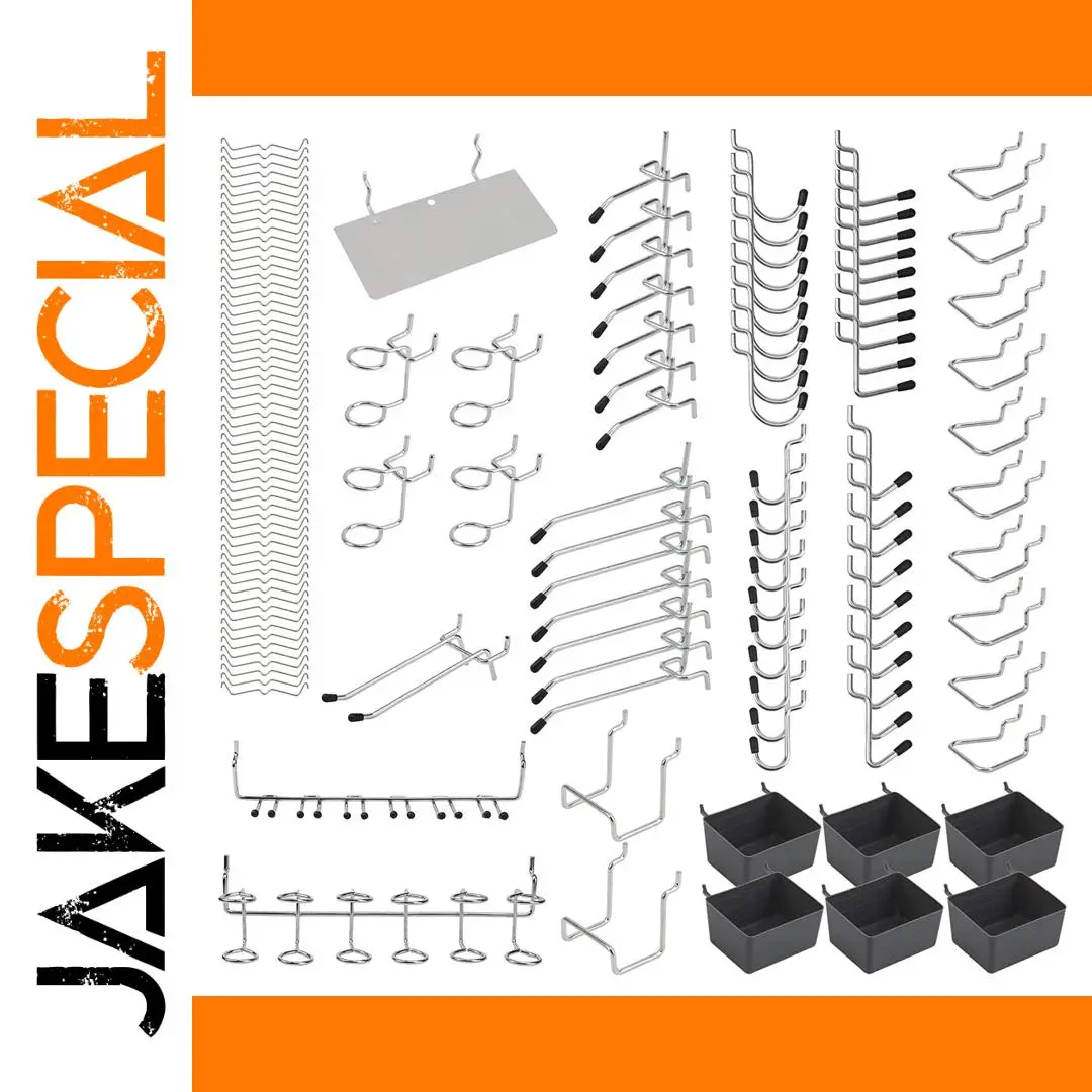 Enhance your organization with this versatile metal pegboard hook set, available in 114 or 140 pieces, crafted from high-quality iron with a durable electroplating finish for rust resistance. It includes 15 different types of hooks, multi-tool racks, pegboard bins, and 60 peg locks to ensure secure attachment on 1/8″ and 1/4″ pegboards with 1-inch spacing. The 114-piece set weighs about 900g with dimensions of 300 x 200 x 100mm, while the 140-piece set weighs approximately 1100g and measures 305 x 110 x 105mm. Perfect for organizing tools, accessories, or household items in garages, workshops, kitchens, and more, offering a sleek, industrial aesthetic with a streamlined, professional look.