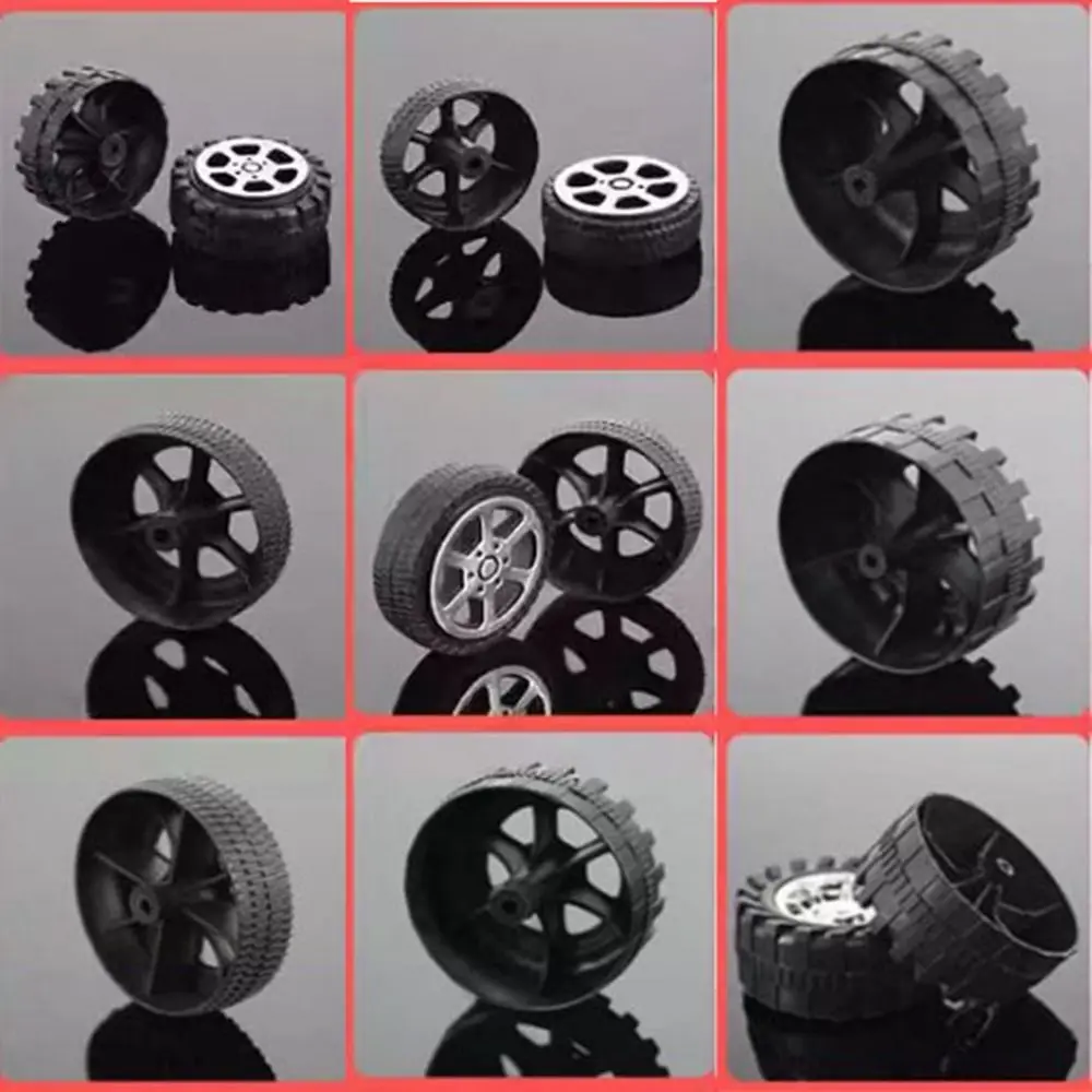 - Offers various aesthetic styles—from smooth, multi-spoke patterns to rugged treaded designs—enhancing the visual appeal of your model cars, drones, or robots.