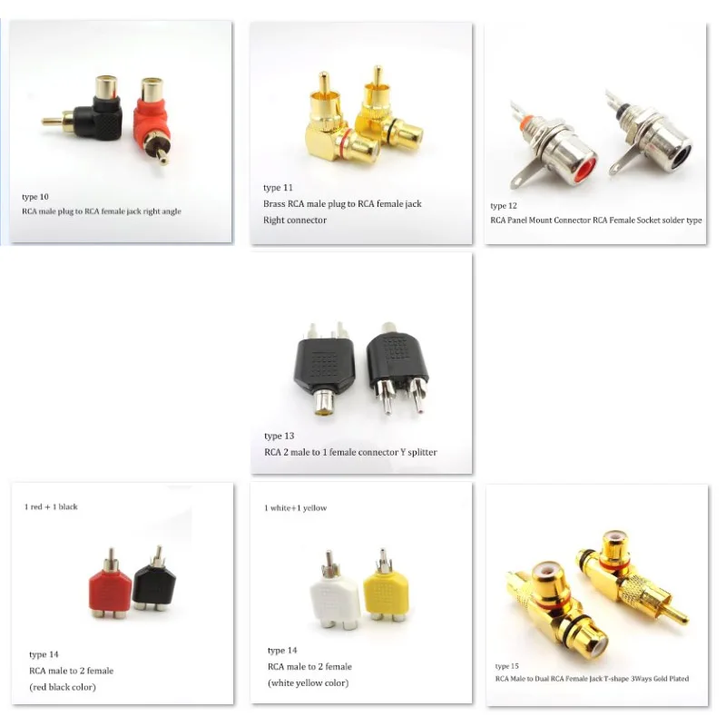 Imagine your audio and video system performing with clear, stable signals—these RCA connectors make that possible. Their diverse configurations provide the flexibility you need for custom setups or upgrades. Durable and corrosion-resistant, they ensure lasting performance and peace of mind. Whether you're installing speakers, TVs, or other AV equipment, this set offers the technical reliability and compatibility you expect. Don't wait—bring professional-grade connectivity to your system today and enjoy seamless audio and video experiences every time.
