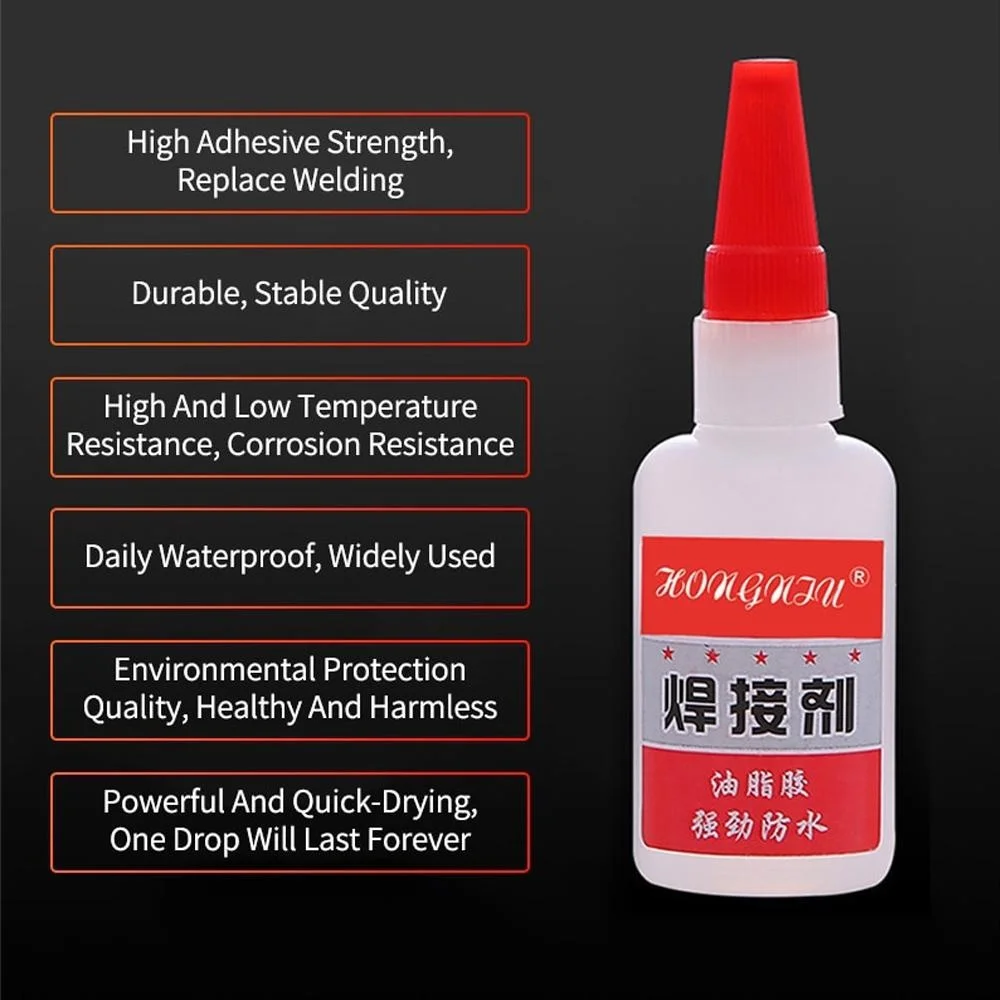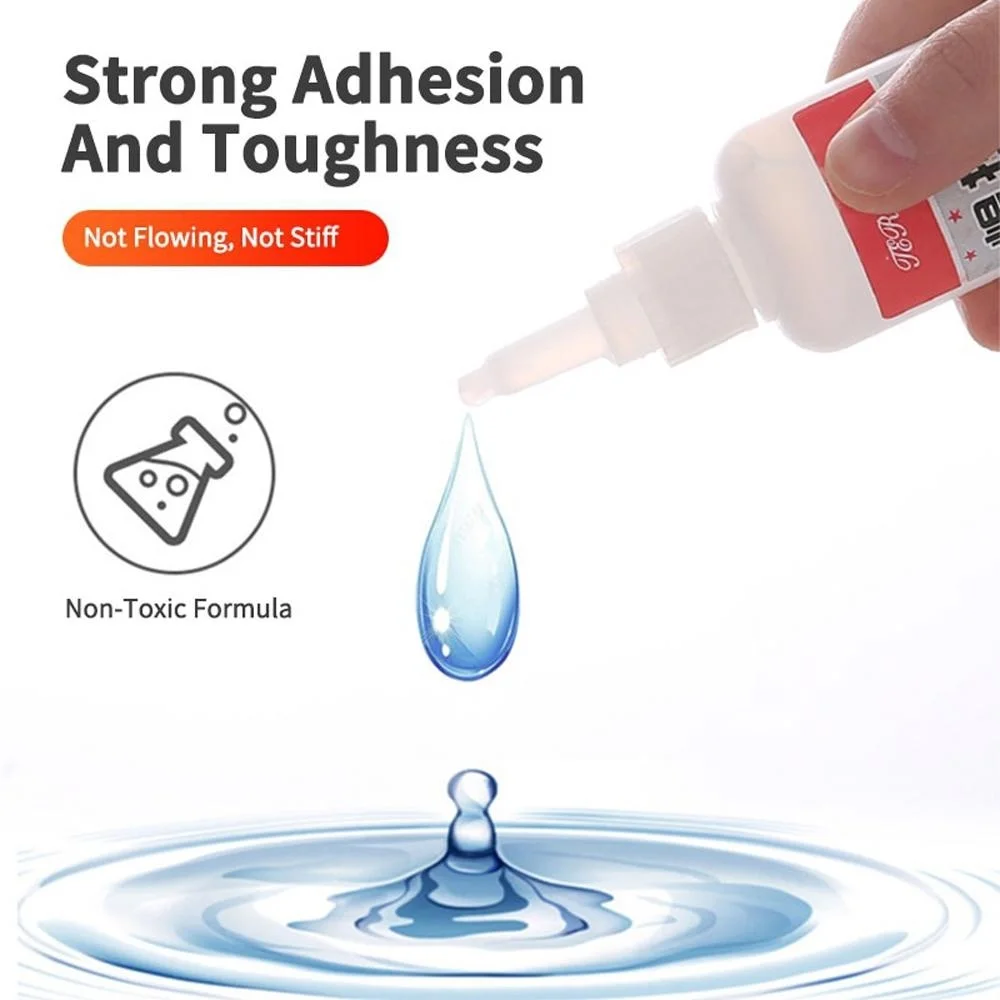 This versatile, strong adhesive glue comes in 20ml and 50ml sizes, providing a quick-drying, flexible, waterproof, and heat/moisture-resistant bond. It is ideal for repairing shoes made of rubber, vinyl, and leather, as well as fixing tires, ceramics, metal, glass, jade, wood, and plastic. The glue is fire-baked without degumming, odor-minimized, and safe for hands. Its powerful adhesion withstands heavy use and stress, making it perfect for DIY repairs on the go. Simply clean the surfaces, apply evenly, and press the cracks for at least 2 hours to achieve a durable, lasting bond you can rely on.