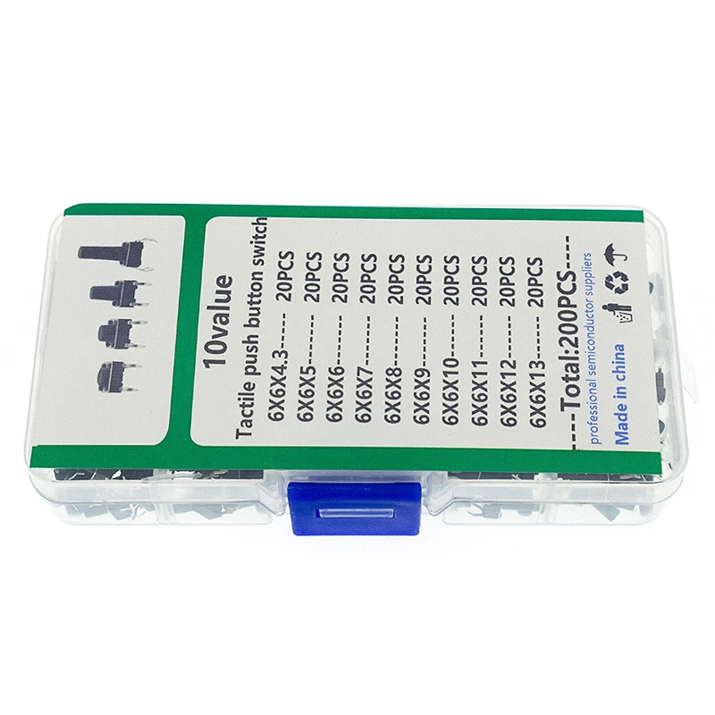 - Includes 200 switches in total, with 20 pieces at each height from 4.3mm to 13mm, ideal for dense, varied circuit configurations and compact designs.
