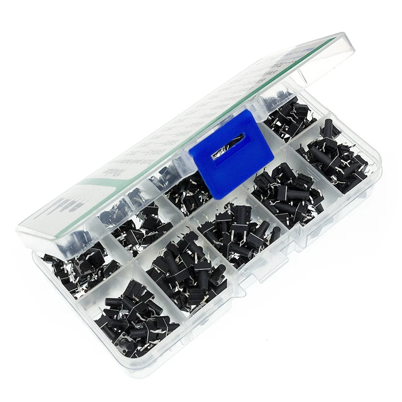 Seamlessly integrate these tactile switches into your electronics, and enjoy the trust of using a reliable, versatile, and organized set. This kit not only simplifies your assembly process but also offers the technical flexibility to meet your specific circuit needs. Improve your productivity and the overall quality of your design by having all the right sizes at your fingertips. Whether you’re creating prototypes or maintaining your existing projects, this set is a smart investment to keep your work neat, efficient, and professional.
