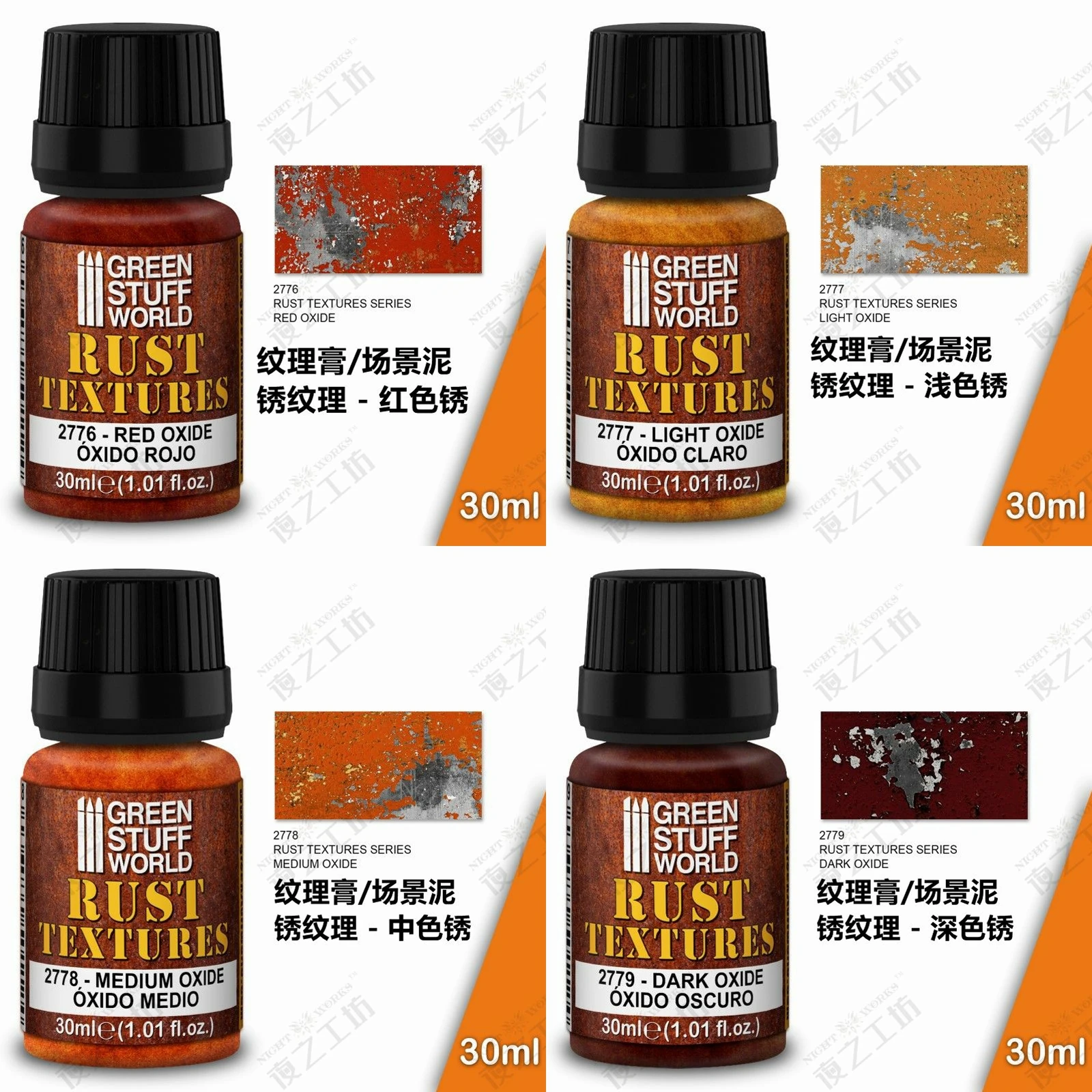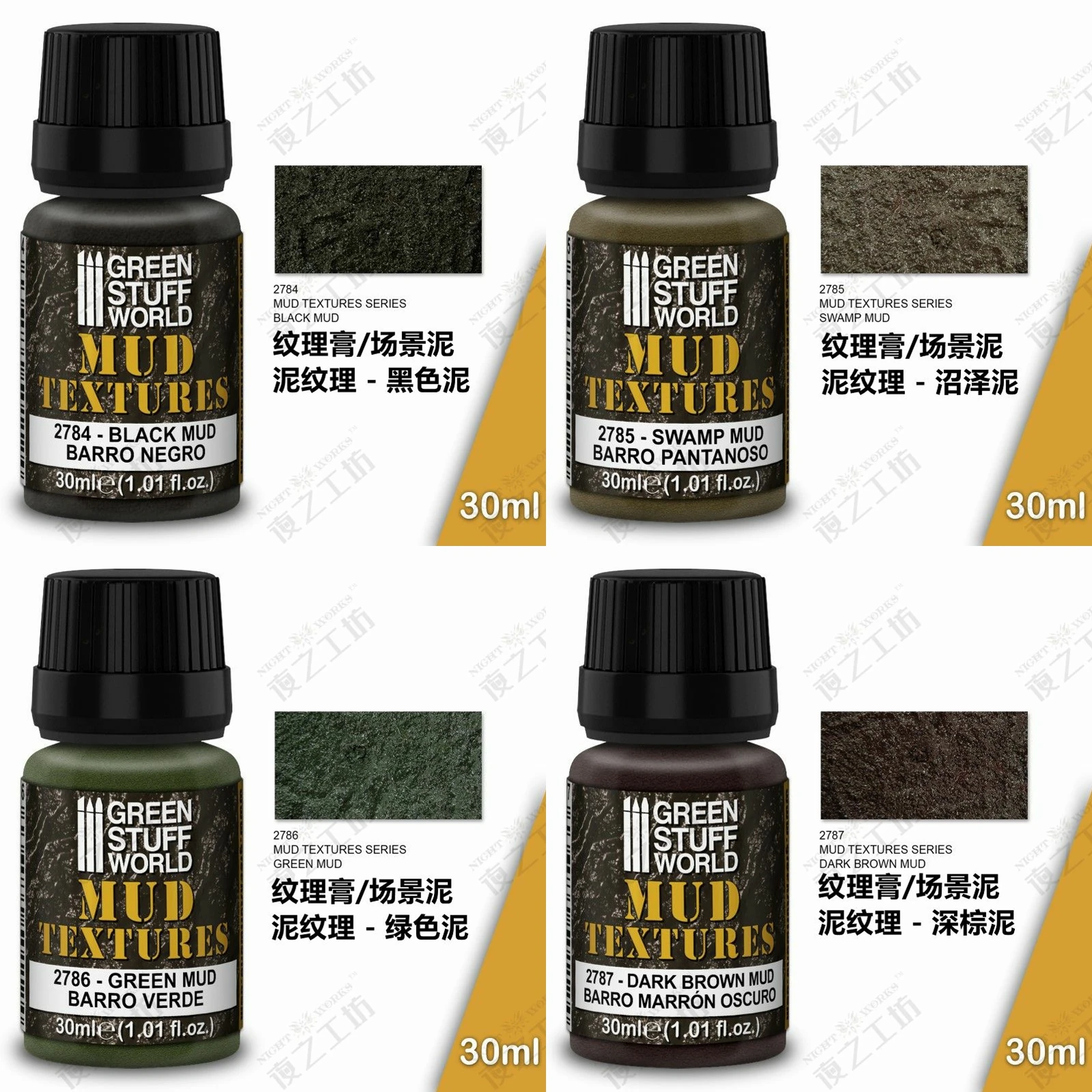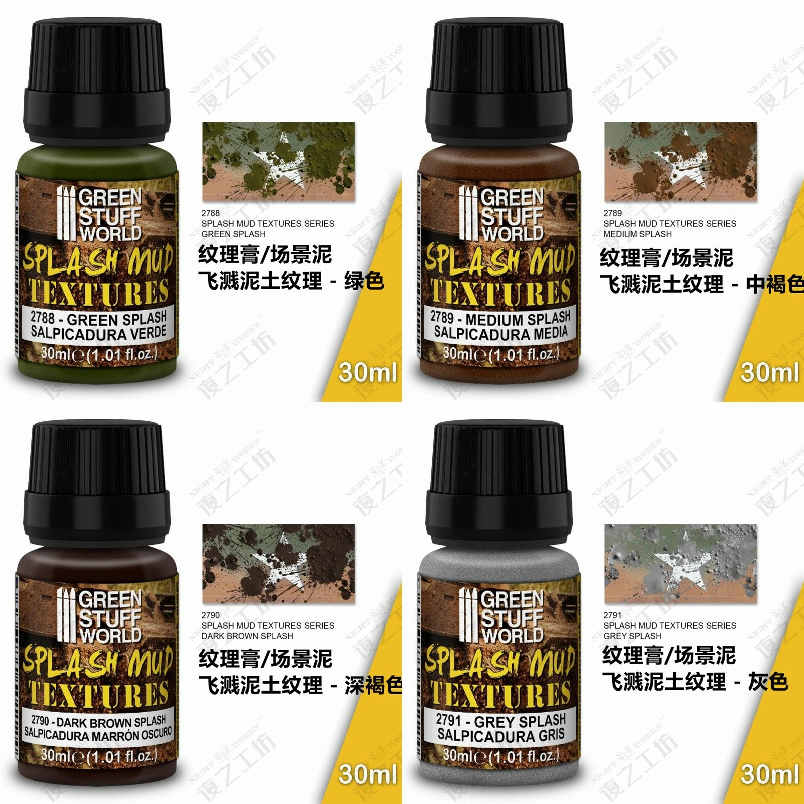 - Technical specifications include: 30ml volume, versatile texture suitable for terrain simulation, compatible with modeling paints, weathering techniques, and scene miniatures.