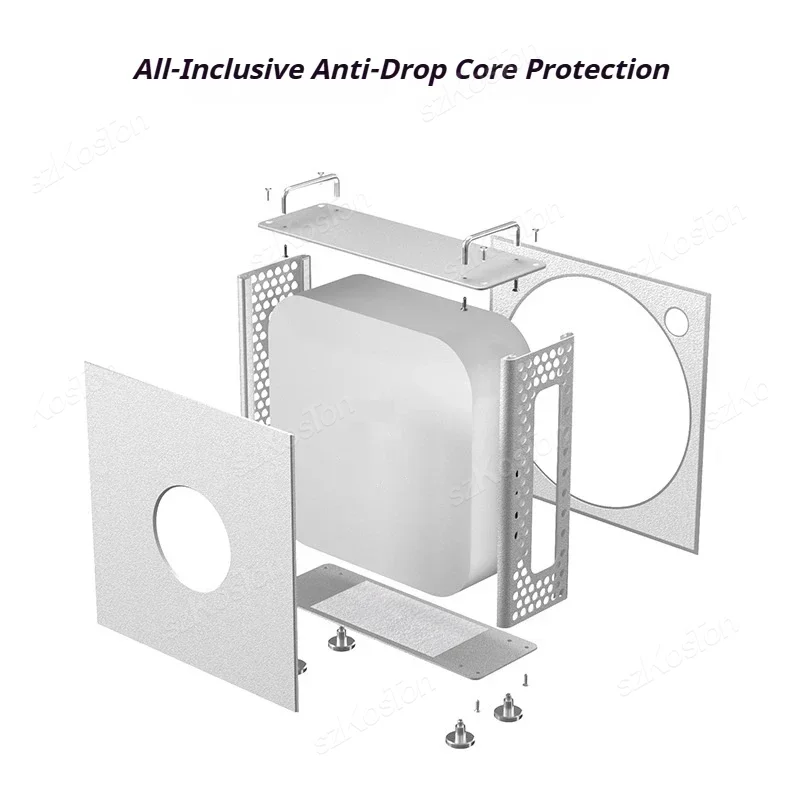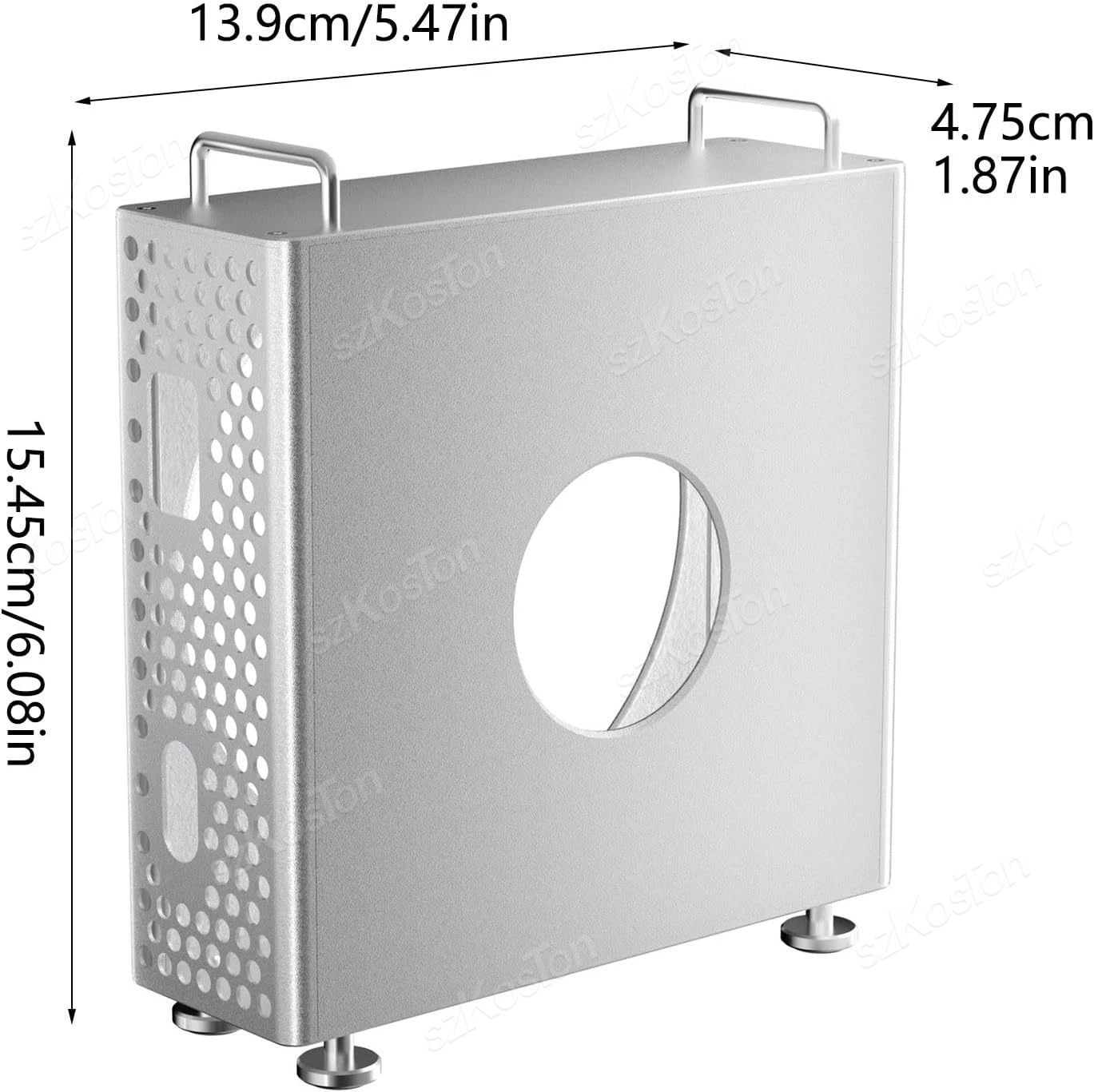 The aluminum alloy vertical stand for the Mac Mini M4 Pro features a sleek silver finish, measuring 139mm in width, 154.5mm in depth, and 47.5mm in height. Its compact design maximizes desk space while promoting enhanced airflow to prevent overheating, ensuring optimal performance during use. Tool-free installation makes setup easy and accessible for all users. While tailored for the Mac Mini 2024, this versatile stand is compatible with various computer hosts of similar dimensions, making it an essential addition to any modern workspace. Enjoy a clutter-free, organized setup that effortlessly merges style and functionality.