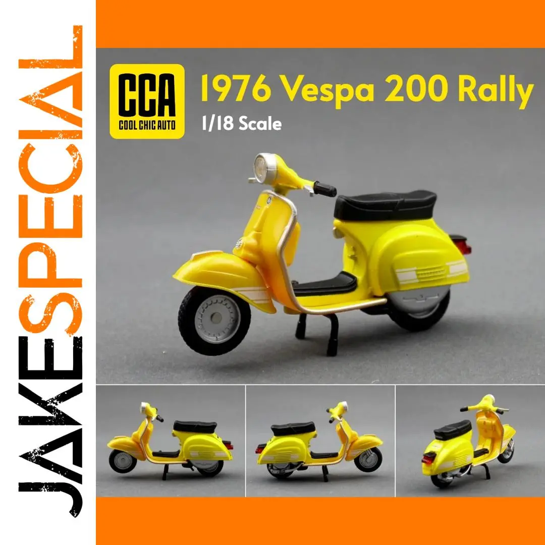 - Features silver hubcaps, footrests, and a rear taillight, capturing the fine details of the iconic Vespa 200 Rally model.