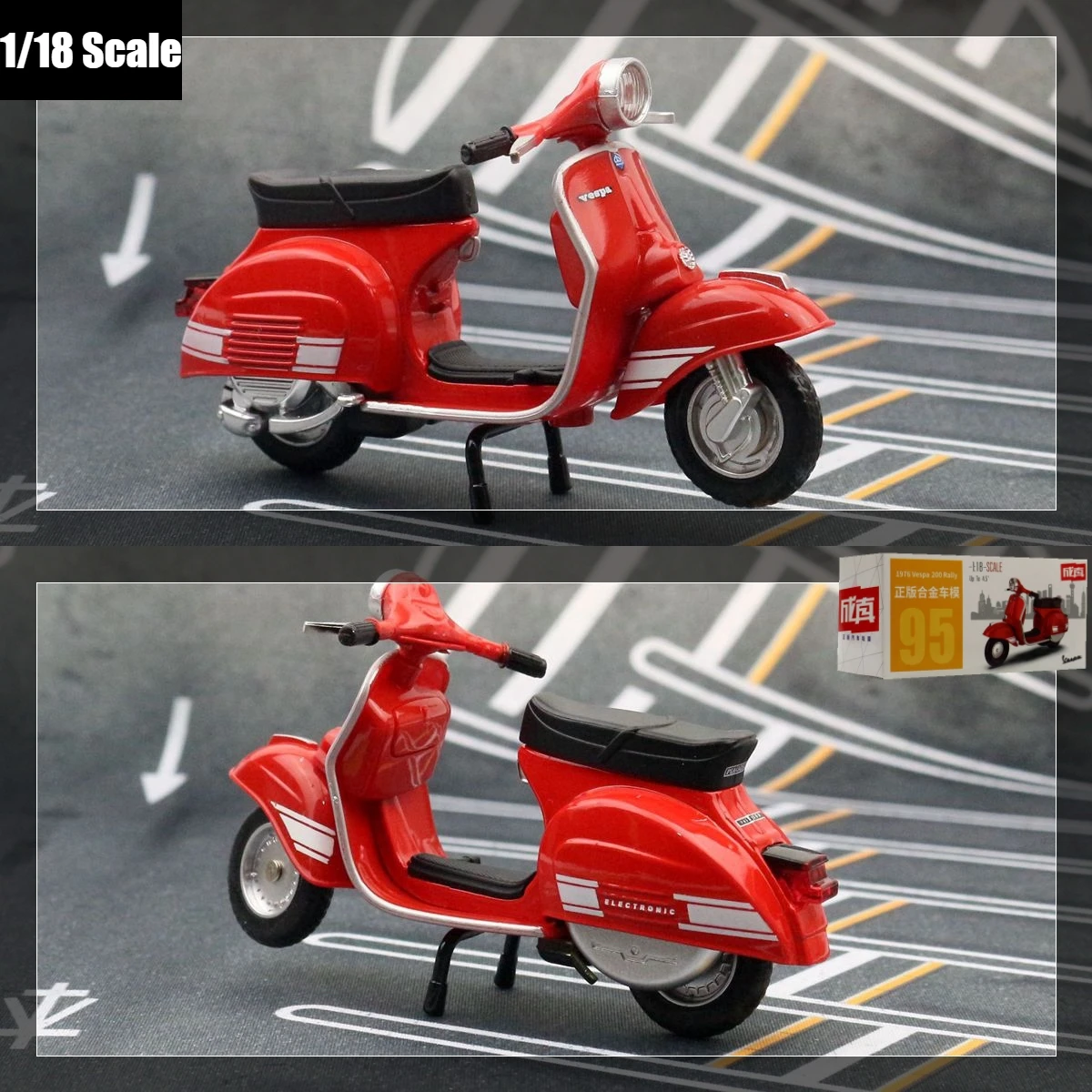 - Accurate 1/18 scale replica featuring realistic curved body, streamlined design, and intricate details for true vintage scooter appeal.