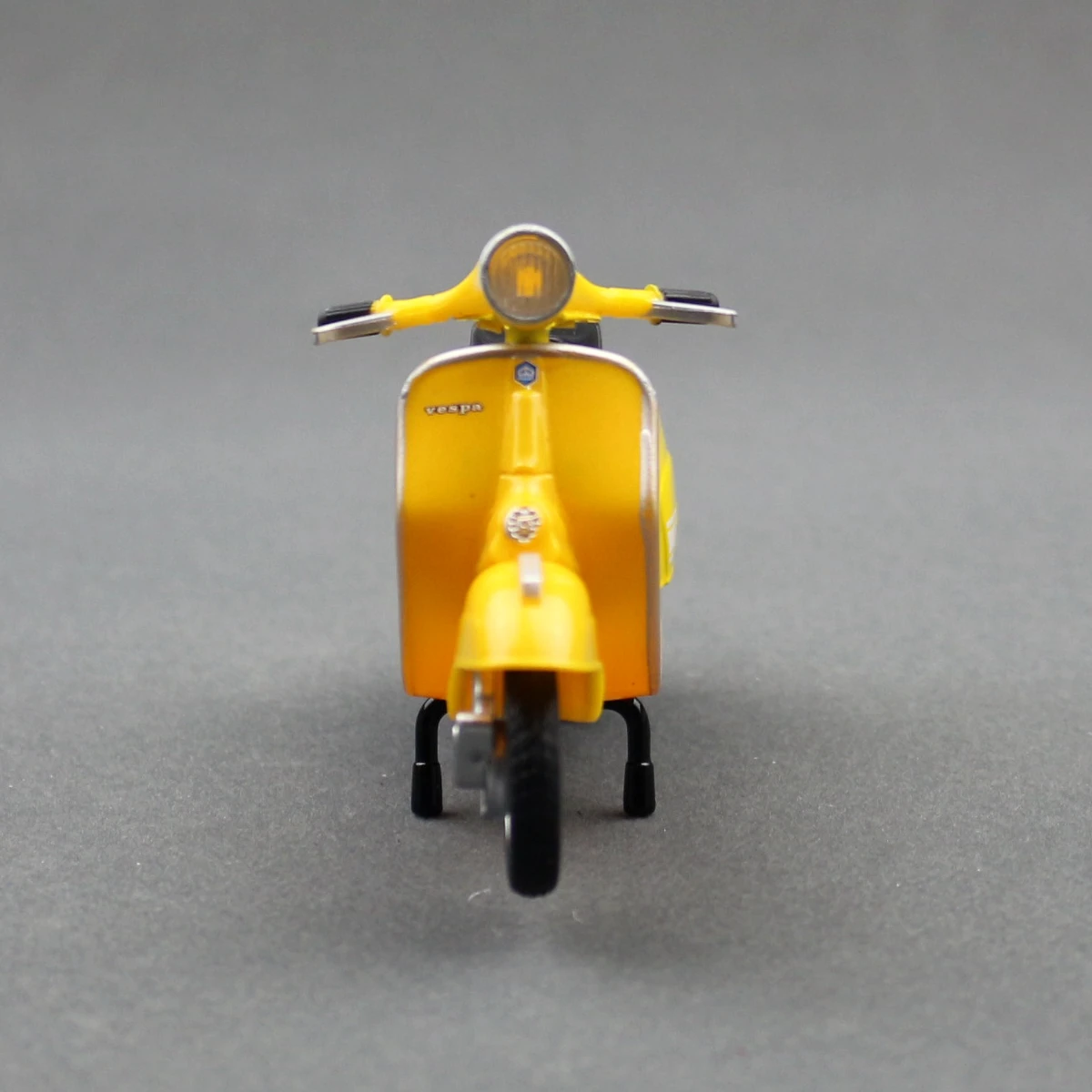 Experience the charm of this miniature Vespa 200 Rally scooter, crafted in a vivid yellow finish that instantly captures attention. Its sleek, vintage-inspired design features realistic black accents on the handlebars and seat, complemented by shiny silver details like the hubcap, footrest, and rear fender. The front fender features subtle painted white stripes that enhance its authentic appearance, while the rear wheel includes a detailed silver hubcap and extending fender. The model’s compact, curved body exudes elegance, making it an ideal collectible for enthusiasts. Its durable metal construction ensures longevity, perfect for display or as a thoughtful gift. Elevate your collection with this finely crafted replica that embodies timeless style and detailed craftsmanship.