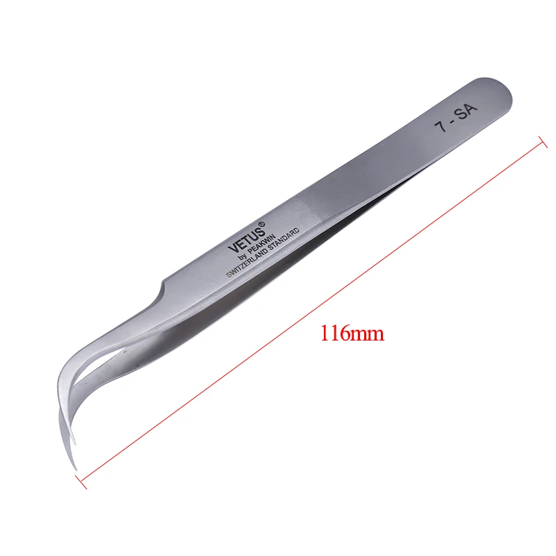 - Available in straight model 7-SA and curved model SS-SA, both featuring finely tapered tips for precise handling of tiny electronic components.