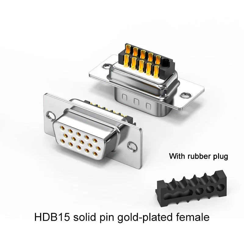 - Each connector features precisely aligned 15 gold-plated pins in three rows, enclosed in a sturdy metal frame with two screw holes to ensure a secure fit.