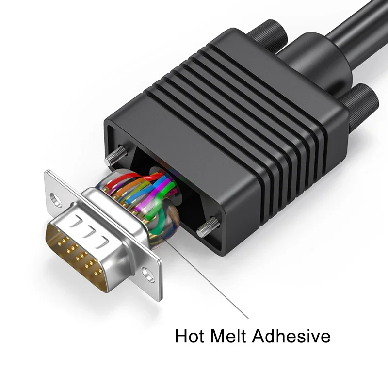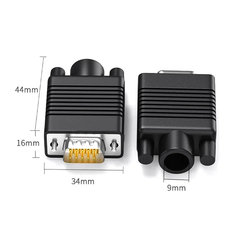 Experience reliable video connections with this high-quality VGA HDB15 welding head, designed for adult collectors and electronics enthusiasts. Made with superior materials, it features a sleek black plastic housing with a textured, ribbed surface for a firm grip and efficient heat dissipation. The connectors come with either female or male ports, each equipped with 15 gold-plated pins arranged in three rows of five, ensuring optimal conductivity and corrosion resistance. The metal frames are finished in silver, with precisely drilled screw holes for secure mounting. Perfect for customizing or repairing computer monitor connections, this versatile VGA connector combines durability with functional aesthetics, fitting seamlessly into professional or hobbyist setups.