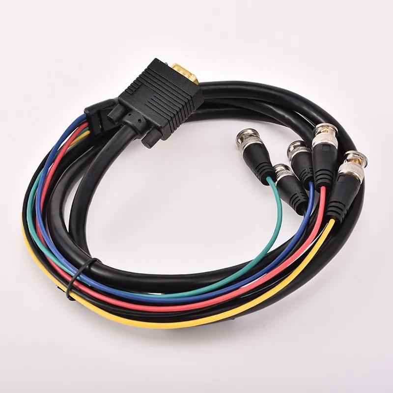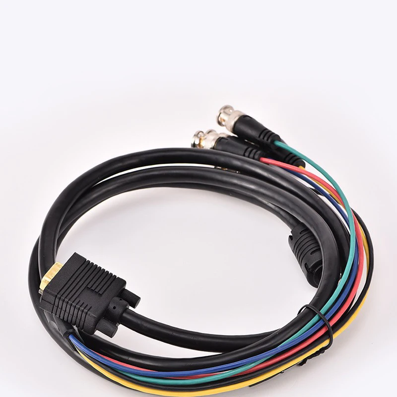 Experience crystal-clear video transmission with this high-quality VGA to 5 BNC cable, designed for professional display setups. Crafted with durability in mind, the cable's sleek black exterior and sturdy construction ensure reliable performance over long-term use. Measuring 1.5 meters or 3 meters, it allows flexibility for various installation environments. The cable features five coaxial cores dedicated to red, green, blue, horizontal, and vertical signals—each protected by multi-layer shielding and built with industrial-grade all-copper BNC connectors. Supporting resolutions up to 1920×1080P, this cable minimizes signal interference, ensuring your high-definition devices like digital TVs, plasma screens, LCD displays, and projectors deliver their best image quality. It’s a reliable, professional-grade connection for demanding visual applications.