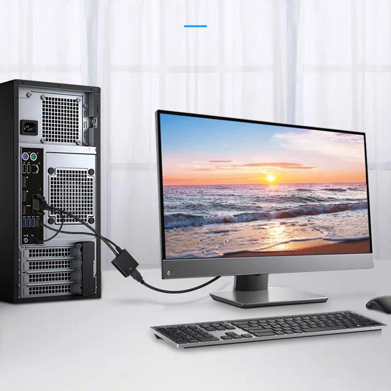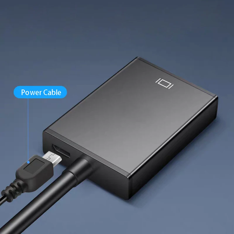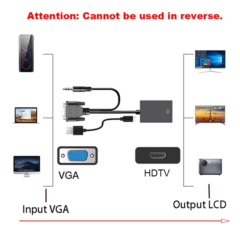 This sleek 0.2-meter VGA to HDMI-compatible cable adapter features a durable aluminum construction and supports 1080P resolution for high-quality video transfer. Designed specifically for conversion from VGA to HDMI, it includes an additional charging or power supply port and supports audio transmission, making it ideal for connecting PCs, laptops, or projectors to HDMI displays. Its compact, black design boasts a professional and modern look, ensuring a streamlined setup for professional or home entertainment environments. Please note, it only functions in the VGA-to-HDMI direction and does not transmit signals in reverse, delivering reliable performance for your audiovisual needs.