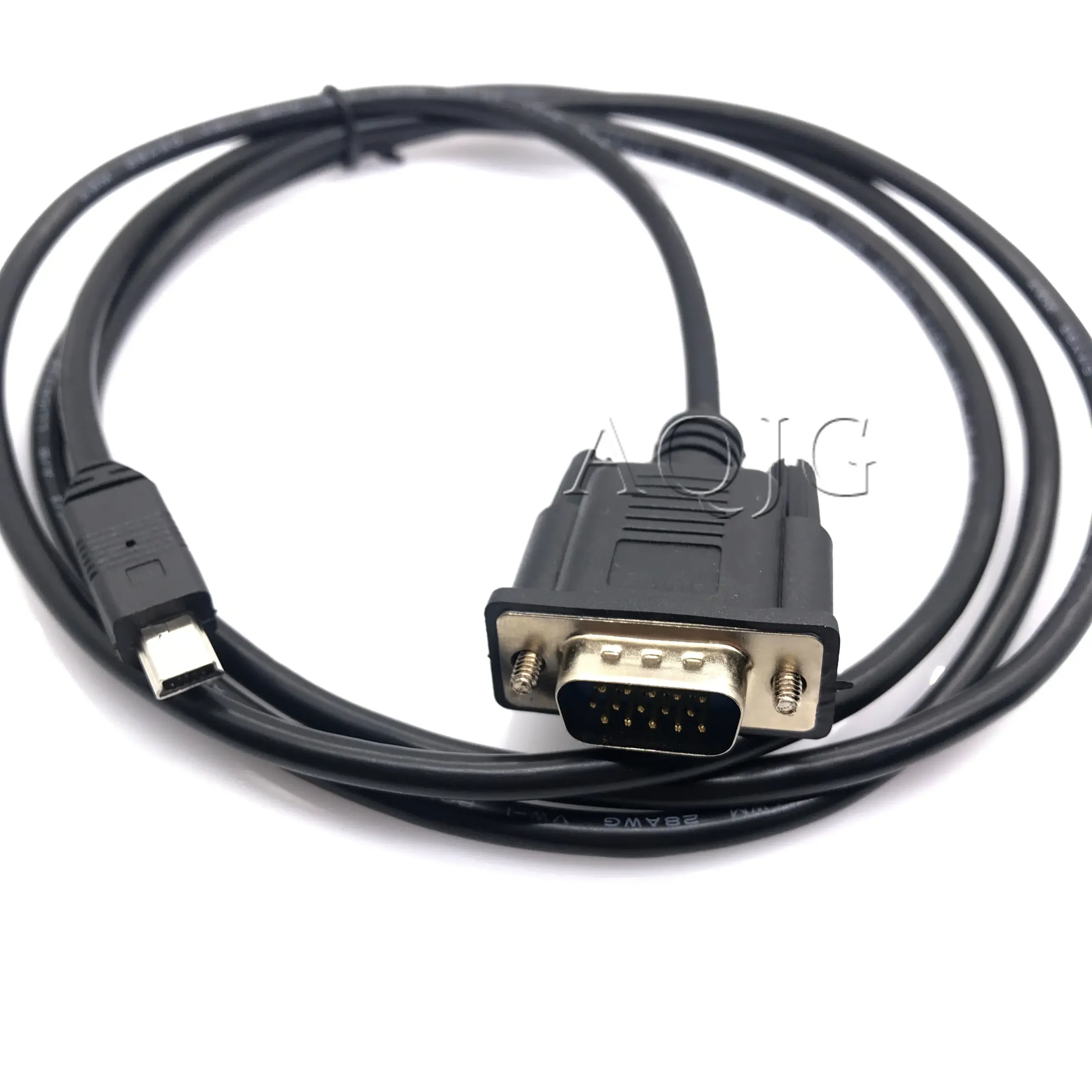 Experience seamless connectivity with this sleek black cable, ideal for linking your mobile DVD or EVD device to compatible display systems. Measuring 1.5 meters (5 feet), it offers ample length for flexible setup and easy use. The cable features a durable outer sheath, ensuring longevity and consistent performance. One end boasts a precise, rectangular VGA 15-pin male connector with a matte finish, gold-plated pins, and adjustable screws for secure attachment. The other end presents a glossy USB Mini 5-pin male connector with five tiny gold pins, perfectly designed for portable media devices. This cable combines functionality with a streamlined, professional look, giving you reliable performance for your media setup.