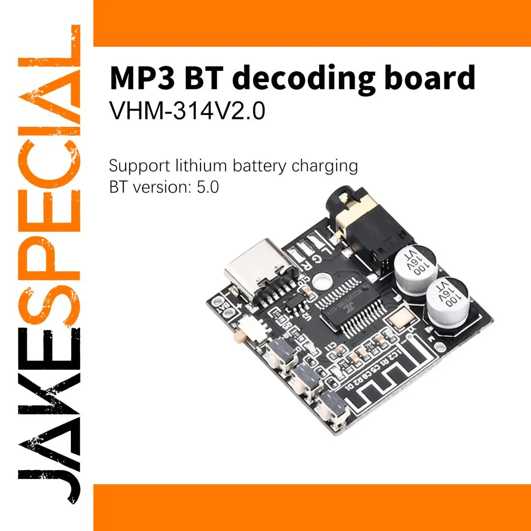 Experience seamless audio enhancement with this sleek, black VHM-314-V2.0 circuit board, designed for sophisticated DIY audio projects. Its modern matte finish contrasts elegantly with silver capacitors and crisp white labels, creating an organized, high-tech appearance. The small, compact structure makes installation straightforward and enhances your custom audio setup. Equipped with dual-color LED indicators, it provides clear visual status updates—red for power, blue for Bluetooth. The board supports lossless Bluetooth decoding and MP3, making your music effortless to stream. Its versatile design supports 3.7V or 5V lithium batteries, ensuring reliable power management, ideal for car or home audio modifications. Imagine transforming your audio system with this reliable, stylish module that merges aesthetic appeal with practical functionality.