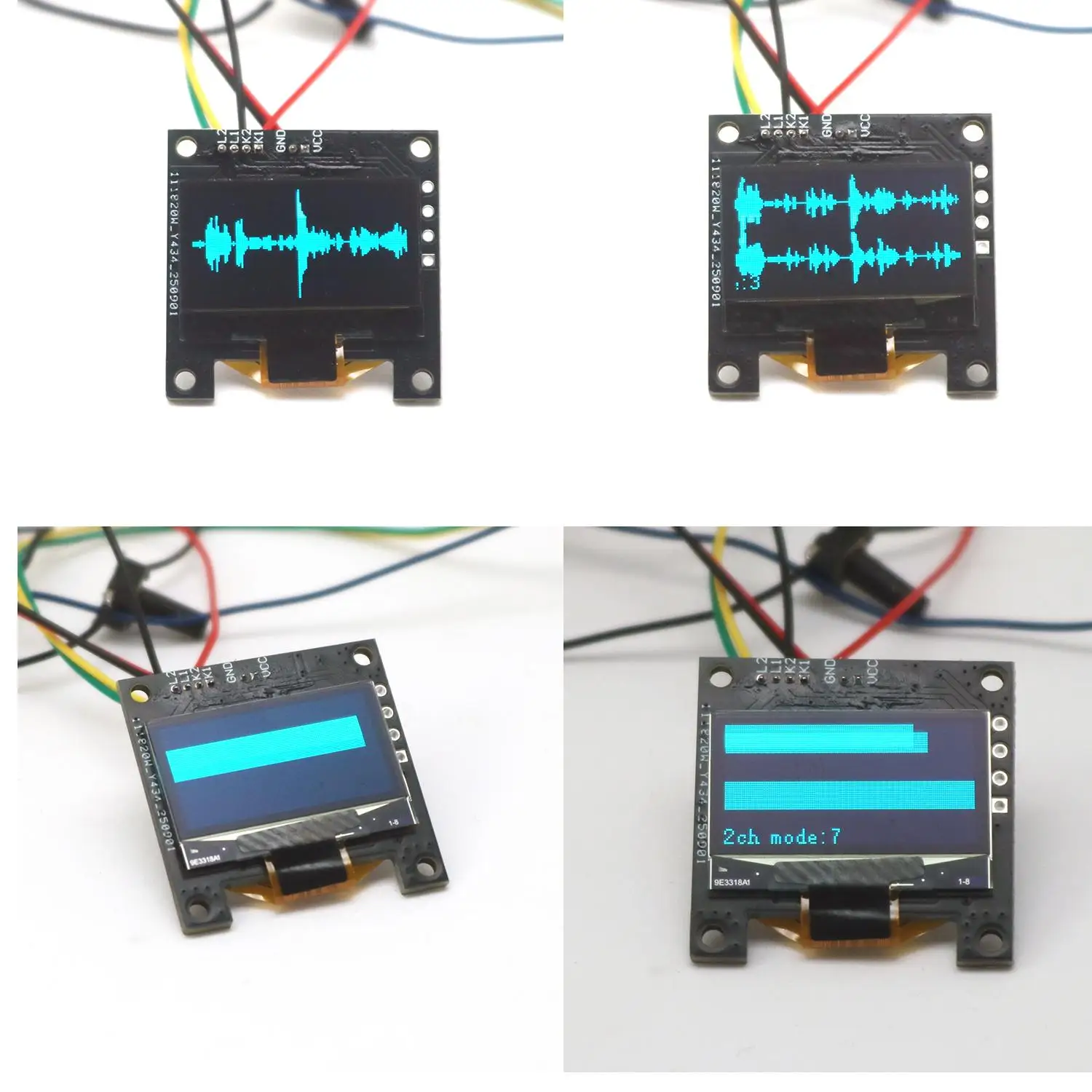 Enhance your audio setup with this compact 0.96-inch OLED spectrum analyzer and VU meter, featuring high-contrast visualization in white, blue, or yellow colors. Supporting stereo input with a wide frequency response of 200Hz to 18kHz and operating at 3V to 7V DC (5V recommended), it offers multiple display modes including spectrum analysis, waveform, and level meter. Ideal for DIY projects, audio amplifiers, and visualizers, this stylish device delivers vibrant, dynamic visualizations of audio signals, making it an attractive and functional addition to your custom audio or electronic projects.