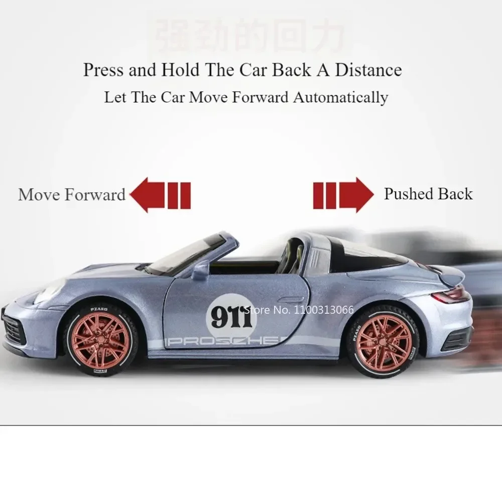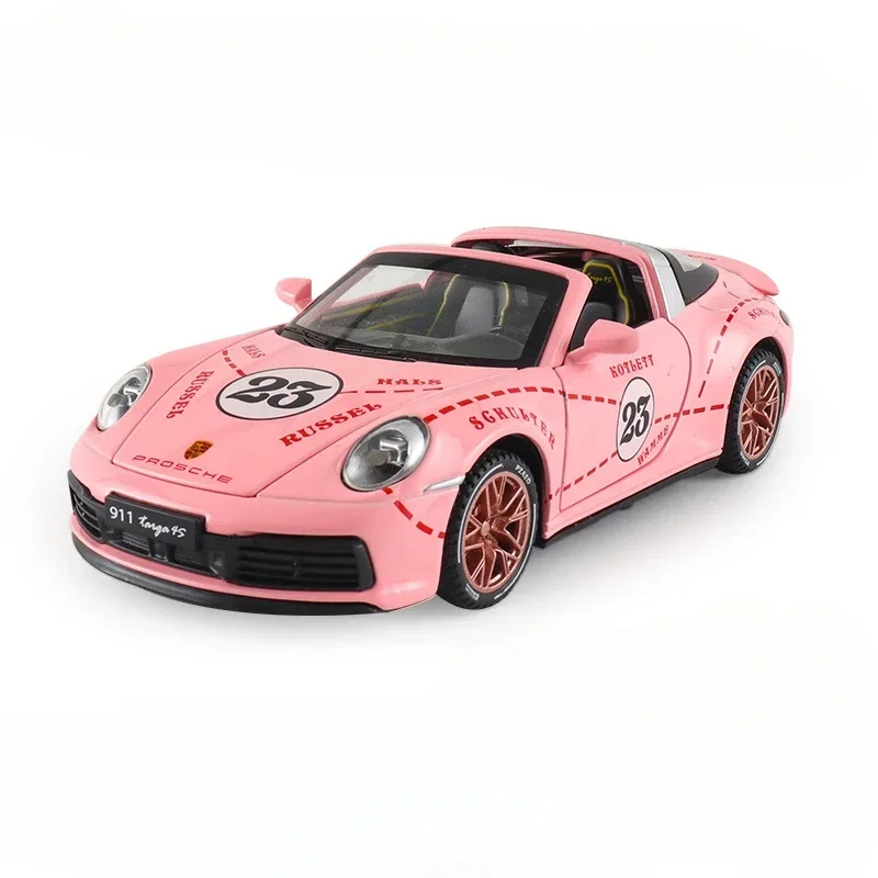 Experience the thrill of owning a highly detailed 1/32 scale Porsche 911 Targa 4S diecast toy car, featuring a zinc metal body, plastic chassis, and rubber tires measuring approximately 15.5 x 6.5 x 4 cm. This collectible model boasts realistic doors that open, a pull-back mechanism, and integrated sound and light functions that enhance play and display. Available in vibrant red and pink colors, it is built for durability and high simulation, making it the perfect addition for adult collectors and enthusiasts. Batteries are included, allowing you to enjoy its dynamic features right out of the box, creating an immersive and exciting experience.
