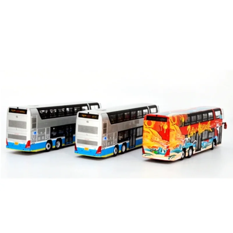 Experience a stunning collection with this 1/64 scale alloy model of double-decker buses, measuring approximately 20 cm in length, 6.4 cm wide, and 4 cm high. Crafted from diecast metal, these detailed replicas feature modern and vibrant designs, including a sleek white version with black-tinted windows and a yellow stripe, a sophisticated dark grey or black model with blue accents, and a lively red bus decorated with colorful paint splashes. Perfect for display or decoration, these finished models are intended for collectors aged 14 and above, showcasing realistic features like front windows and side mirrors, all without electronic components or batteries.