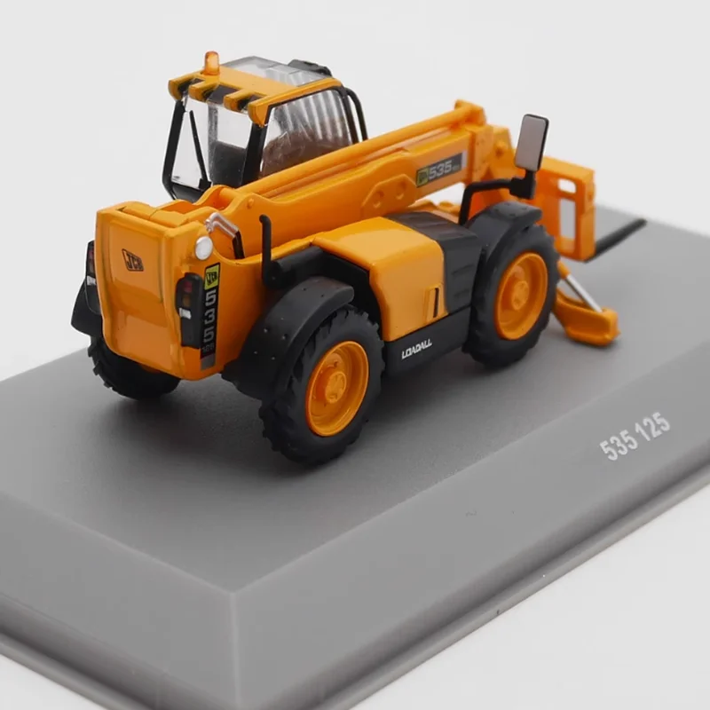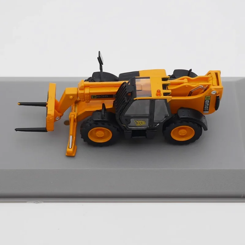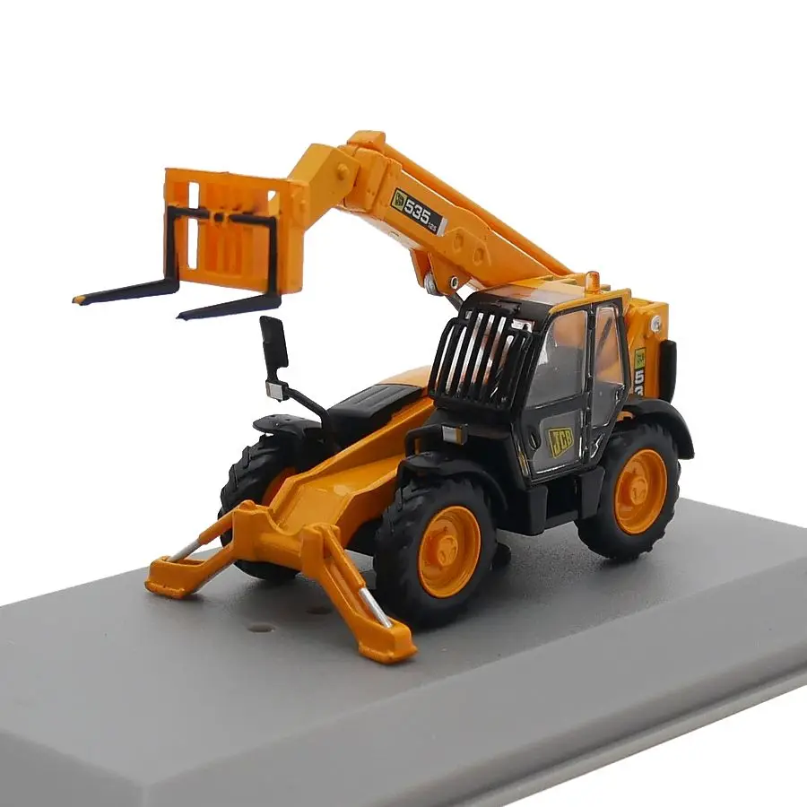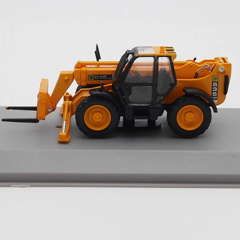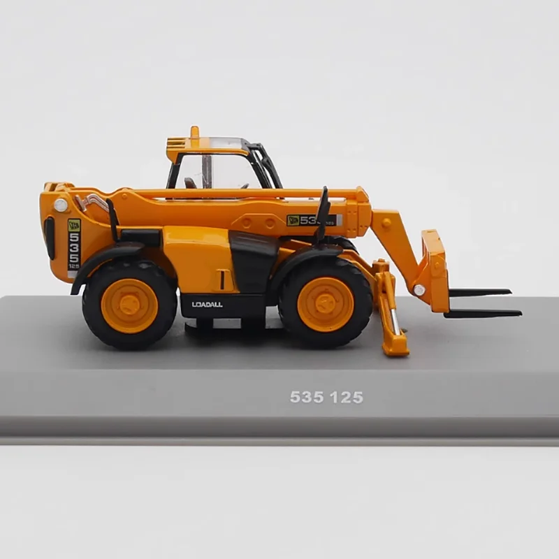 Step into the world of industrial machinery with this highly detailed 1/72 scale forklift model, crafted from durable alloy and plastic. Its bright orange finish, complemented by sleek black accents on the cab, wheels, and machinery components, makes it a striking collectible piece. The model features highly realistic details such as protruding treads on the rugged black tires, a transparent plastic-enclosed cab with black supports revealing the simulated interior, and a telescopic lifting arm with intricate joints and hinges. The black fork assembly is positioned slightly downward, enhancing the authenticity of load-lifting scenarios. Perfect for collectors or enthusiasts, this static scene replica captures the essence of real forklift engineering with sophistication and style, adding realism and vibrancy to any display.