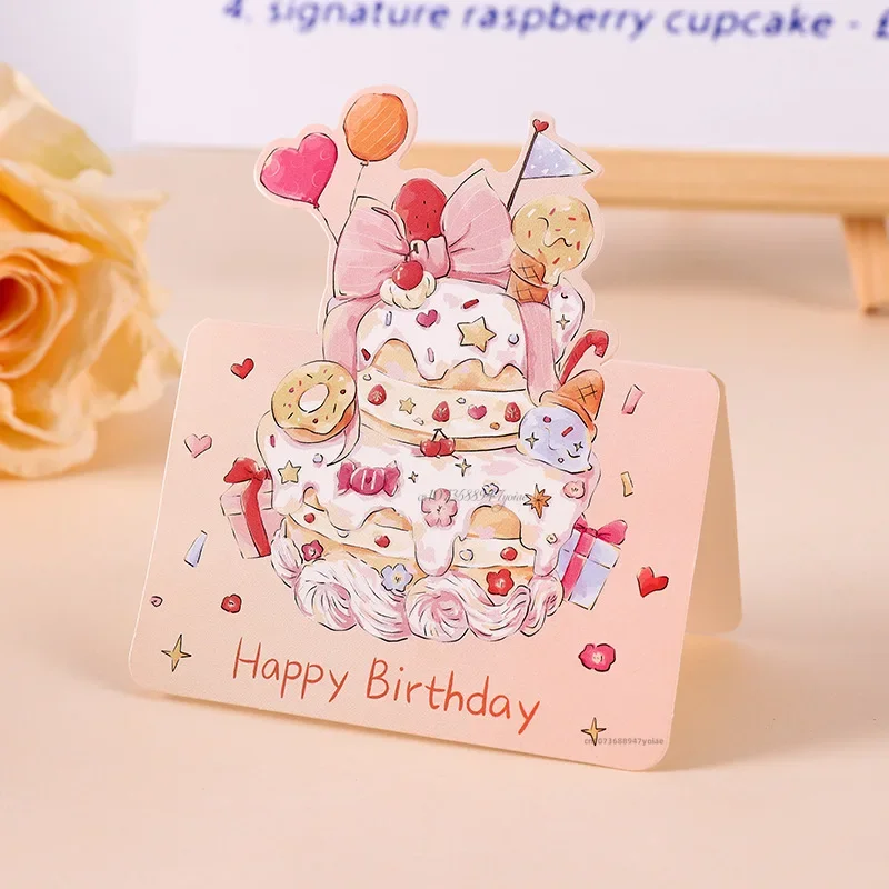 Elevate your celebration with this set of 10 vibrant, cartoon-style birthday greeting cards, each featuring detailed 3D pop-up designs that add a playful, romantic touch. Crafted with bright pastel colors including pink, red, purple, and yellow, these cards showcase elaborately decorated multi-layered cakes adorned with strawberries, blueberries, flowers, bows, and candles, all rendered with textured icing, sprinkles, and floral motifs. These engaging cards are perfect for kids’ birthday parties, friends’ celebrations, weddings, or festive occasions. Non-customizable and single-page, their cheerful and intricate illustrations create a lively, charming atmosphere, making your heartfelt wishes memorable for any joyful event.