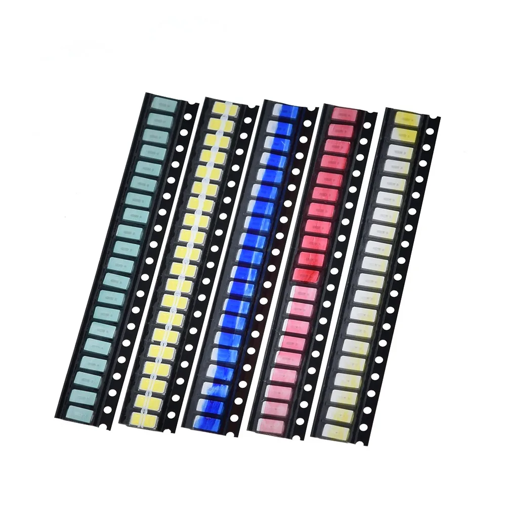 Imagine enhancing your electronic designs with this stunning array of SMD LED diodes, perfect for hobbyists and professionals alike. Featuring five vibrant colors—green, red, white, blue, and yellow—you'll find exactly what you need to add illumination, indication, or aesthetic appeal to your circuits. The diodes are compact, measuring approximately 5.7mm by 3.0mm, and designed for durability, with an impressive lifespan of 100,000 hours. Each color has 20 pieces, making a total of 100 high-quality units. Whether you're working on switch sensors, microcontroller lighting, or custom electronics, these LEDs offer reliable performance and vivid color output. Their sleek black mounting strips make installation straightforward and organized.