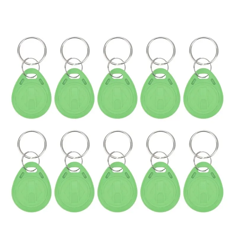 - Each RFID key tag measures 35 x 29 x 5 mm and weighs approximately 4 grams, making them lightweight, compact, and easy to attach to keys, badges, or other items with an included key ring.