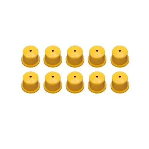 Enhance your RC agricultural pesticide spray drone with this set of 10 high-pressure round sprayer nozzles, featuring an 80-degree spray angle. Crafted from durable composite material, these nozzles are color-coded in vibrant yellow, brown, orange, green, blue, and red for easy identification. Compatible with RC airplanes and other vehicles, they are designed for precise and efficient pesticide application. Non-electric and requiring no batteries or power supplies, these CE-certified nozzles are suitable for users aged 14 and above. Their compact, cone-shaped design offers a practical and visually striking solution for professional and hobbyist agricultural spraying needs.