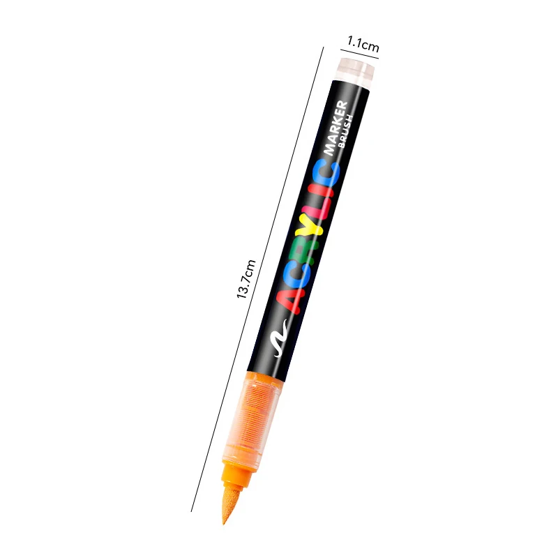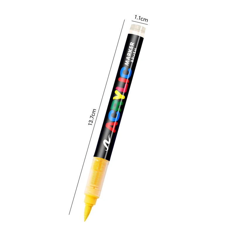 Experience the joy of creating with this high-quality acrylic marker pen. Featuring a sleek, transparent plastic body, it beautifully displays the vivid yellow ink inside. The bold, rainbow-colored “ACRYLIC” text adds an artistic touch, making it as inspiring to look at as it is to use. The soft, pointed brush tip allows for precise, smooth application, perfect for detailed work or broad strokes. Whether you're painting on stone, ceramic, glass, wood, canvas, or paper, this marker offers exceptional versatility. Its compact, portable design ensures you'll always have your favorite colors handy for spontaneous, creative moments. Elevate your artwork with this vibrant, durable marker pen and let your imagination run wild.