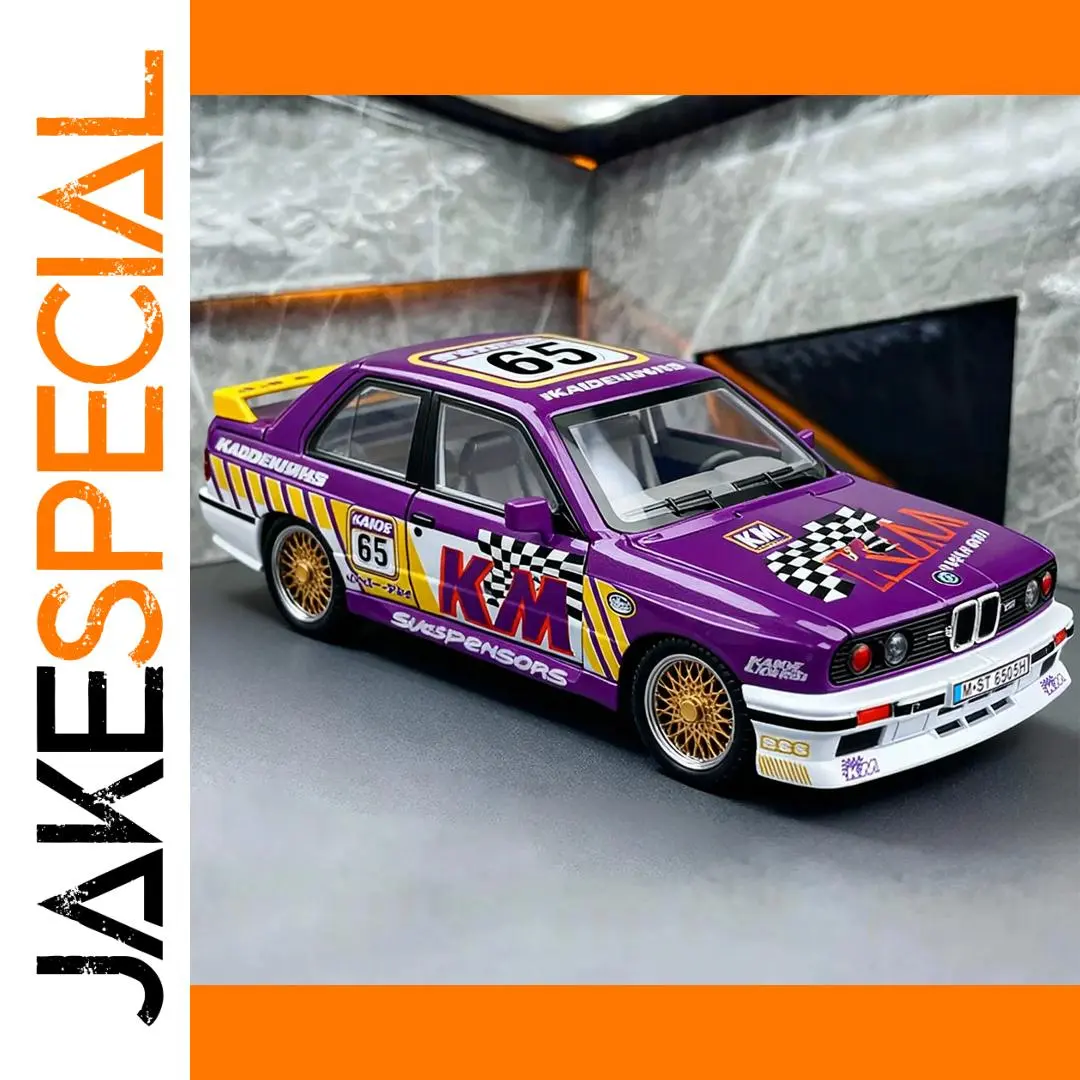 Imagine owning this stunning 1:24 scale diecast model of a BMW M3, crafted with remarkable attention to detail. Its vibrant purple color is accentuated by bold racing-inspired decals, including large black and white numbers, checkered flags, and striking red branding elements like “KWM.” The glossy painted finish adds a premium feel, making it an eye-catching collectible or desktop ornament. The alloy metal construction ensures durability, while the pull-back mechanism offers interactive play or display versatility. This model’s transparent windows reveal a simplified interior with light-colored seats, dashboard, and steering wheel, capturing the essence of a high-performance racing vehicle. Whether for display or collection, this model embodies speed, style, and craftsmanship, bringing excitement and sophistication to your space.