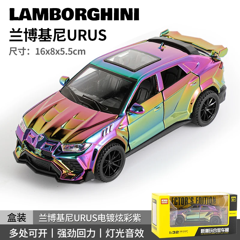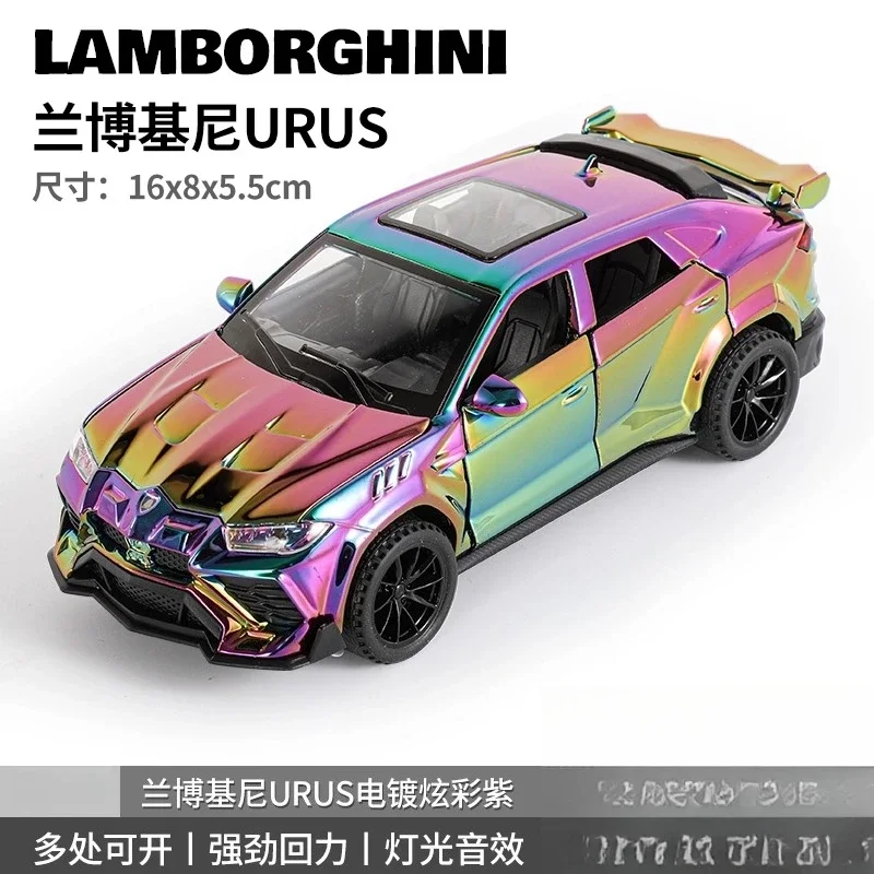 Imagine having this striking metallic URUS SUV on display in your space, admired by friends and fellow collectors alike. Its iridescent colors and detailed features will make it a centerpiece. With functional sound and lights, it brings your display to life, adding an extra layer of realism. Investing in this model means owning a vibrant, high-quality piece that combines luxury, sportiness, and craftsmanship. Don’t miss the opportunity to elevate your collection—this model is designed to delight and impress. Elevate your space with this extraordinary diecast SUV today!