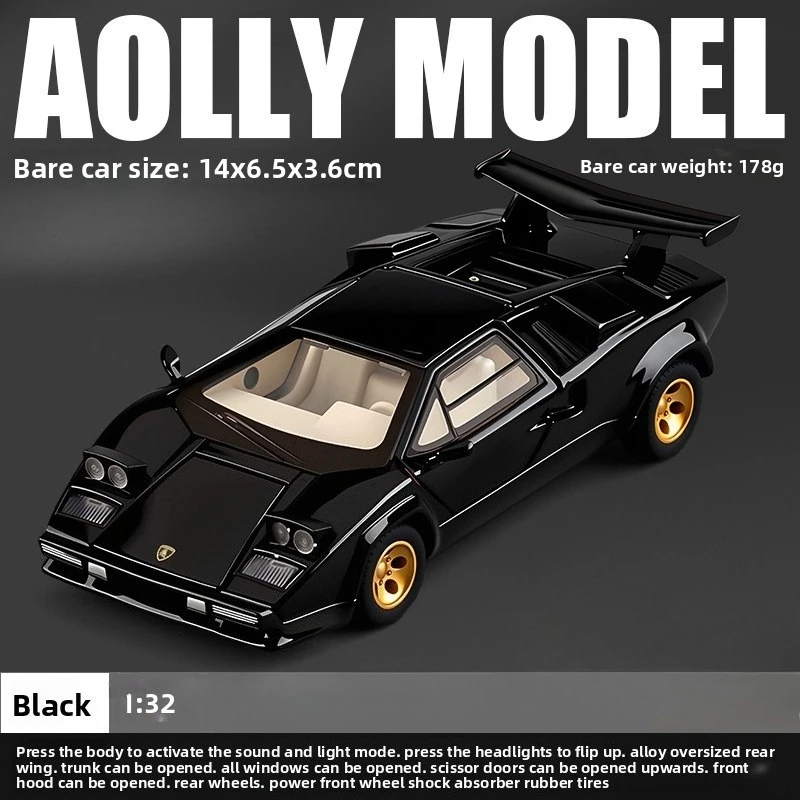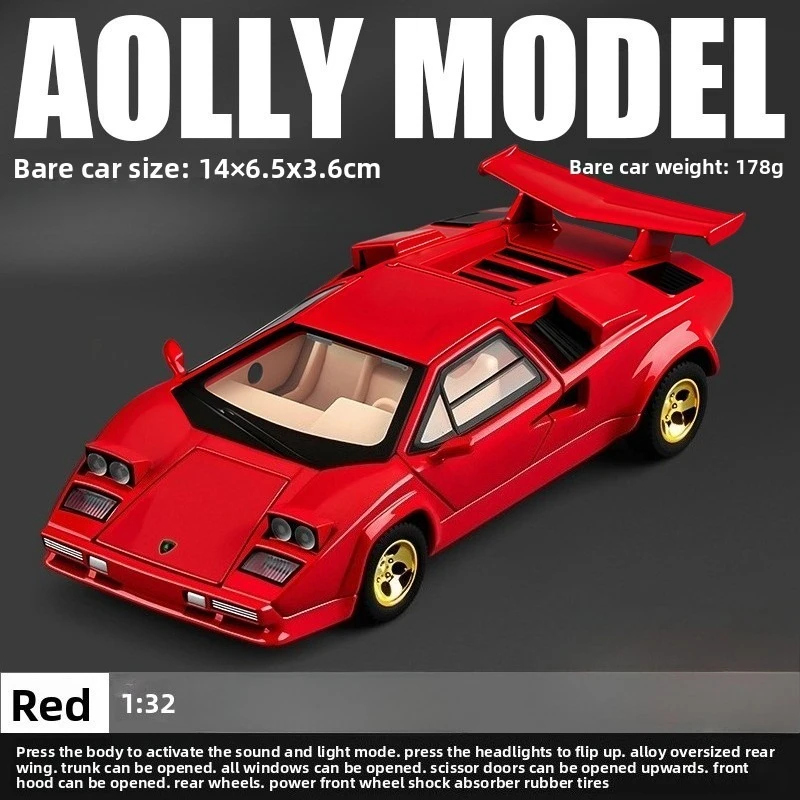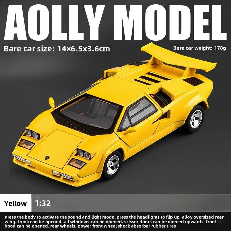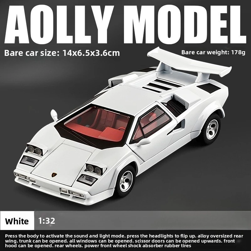Bring a touch of the legendary Lamborghini Countach into your collection, and enjoy the craftsmanship and realism of this exceptional diecast model. Perfect as a gift or a stunning addition to your display, it captures the essence of classic sports car design. Elevate your passion for automotive history with a model that combines detailed artistry, vibrant color, and fun sound/light features. Don't miss out—make this iconic car yours today and experience it firsthand!