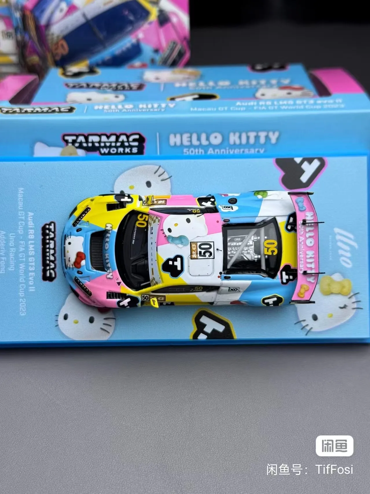 Experience the vibrant charm of this Macao-exclusive 1:64 scale die-cast alloy car model, measuring approximately 7 cm in length. Crafted from durable metal with a glossy, colorful finish, the model features a striking white body accented by pink details and a bold yellow and black “Tarmac Works” racing livery. The black wheels with pink accents add a playful touch to its sleek racing-inspired design, making it a perfect collectible. Designed for collectors aged 14 and above, this meticulously hand-assembled piece showcases high-quality craftsmanship with minor imperfections typical of manual assembly, enhancing its unique character and appeal.