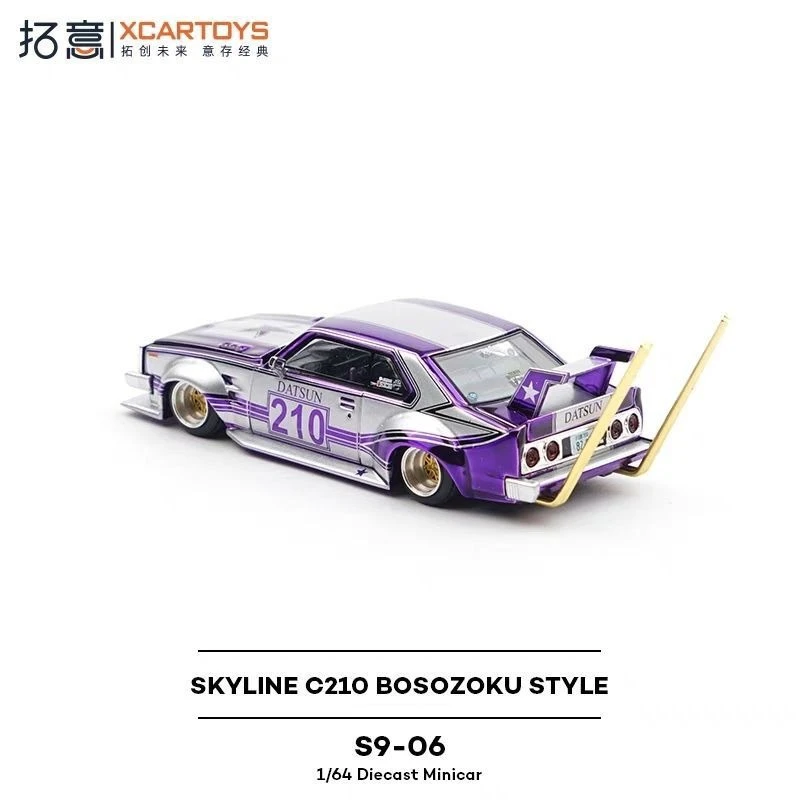 - This 1:64 scale car model showcases a metallic purple body with silver accents on the roof, hood, and sides, highlighting its sleek, sporty design and modern aesthetic. It’s perfect for collectors.