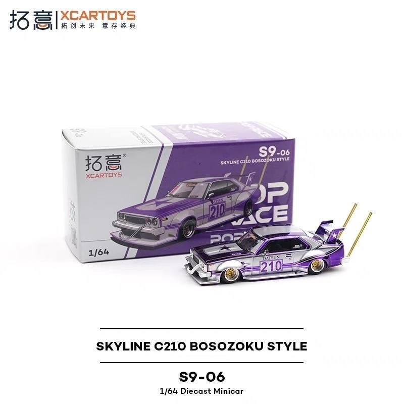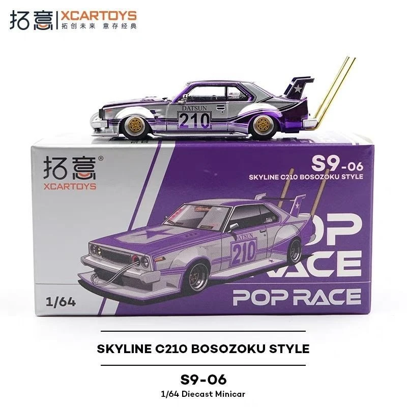 Experience the thrill of high-speed racing with this highly detailed 1:64 scale die-cast model. The sleek, metallic purple body is accented with silver on the roof, hood, and sides, combining sporty aesthetics with refined craftsmanship. The front grille and bumper are realistically molded, featuring two round headlights—one with a yellow tint—adding to its dynamic appearance. The clear windshield reveals a finely detailed interior, including a steering wheel and support structures. A prominent rear wing spoiler in purple with yellow rods sharply enhances its aerodynamic look, while the metallic chrome wheels fitted with rubber tires mimic real racing performance. Crafted from durable metal, this model is a true collector’s gem designed to evoke the racing spirit. Perfect for display or as a special gift for enthusiasts.