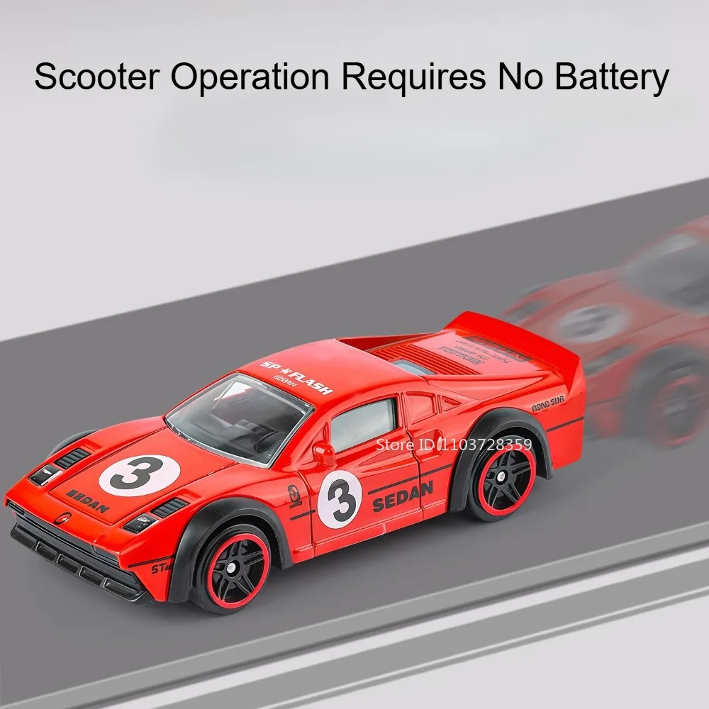 Experience the thrill of high-speed racing with this beautifully crafted miniature sports car. Meticulously designed with a diecast metal body, plastic chassis, and rubber tires, this model captures the essence of real racing cars. Its sleek aerodynamic shape features smooth curves, bold racing stripes, and dynamic decals, evoking a sense of speed and performance. The available bright colors—yellow, red, blue, and orange—highlight its energetic design, while detailed components like vents, spoilers, and transparent windshields add realism. This high simulation car is perfect for collectors or enthusiasts seeking a lifelike representation of racing cars. Its slide-forward functionality, combined with sound and light features, makes it a captivating decorative piece or toy. Imagine owning a piece of racing history in miniature form.
