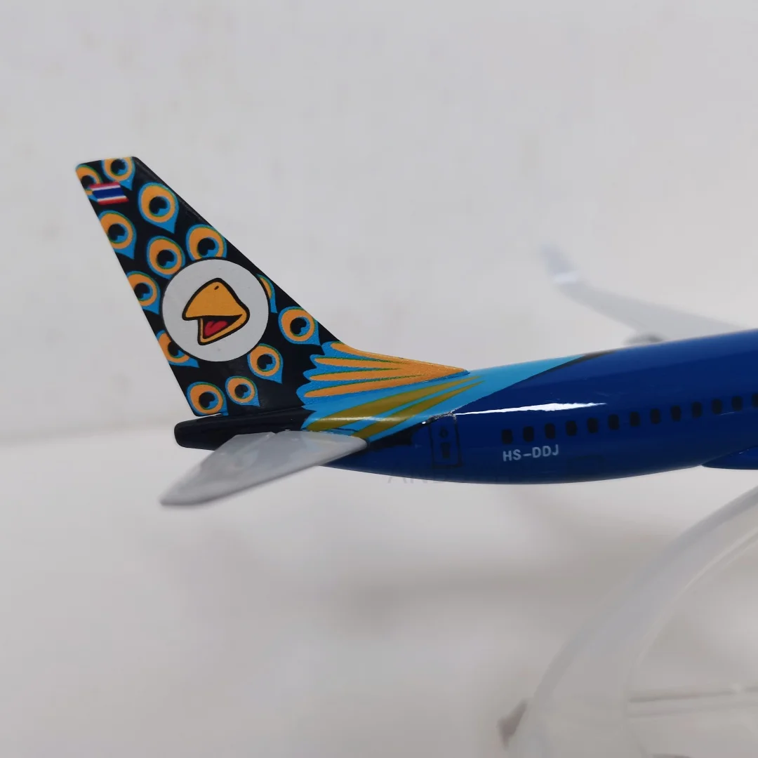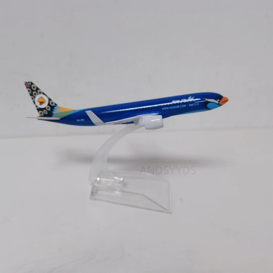 Transform your space with this vibrant 16cm diecast alloy Boeing 737 Air NOK model, designed to showcase a lively blue fuselage with a glossy finish. The model features detailed white lettering, colorful peacock feather tail design, and a playful bird graphic at the nose, capturing a modern yet whimsical aesthetic. Crafted from high-quality metal and resin, it adds a sleek, polished look to desks or shelves. The wings are detachable for safe shipping, requiring simple assembly. Its eye-catching colors and intricate patterns make this piece a perfect gift or collection item. Despite minor paint imperfections due to manufacturing, it maintains remarkable detail and vibrancy, bringing a touch of modern aeronautical charm to any decor.