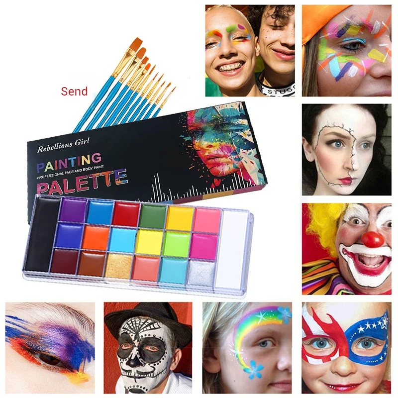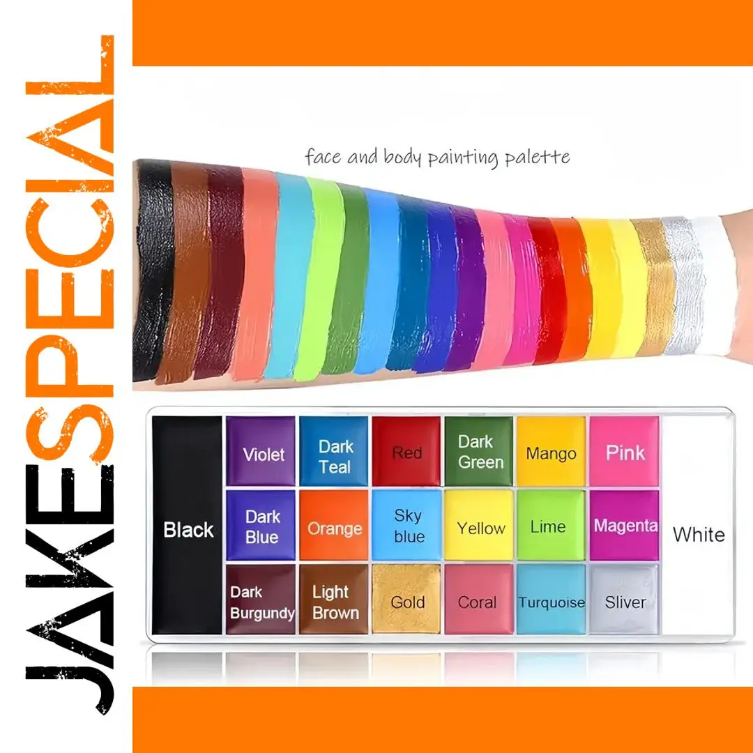 Immerse yourself in creative expression with this vibrant 20-color face and body paint palette. Designed for both professionals and enthusiasts, it features highly saturated, bright shades ranging from deep violets and dark teals to vivid reds, yellows, and greens. The creamy, glossy textures are embossed and textured, making application smooth and effortless. Water-activated pigments allow easy blending and precision, perfect for detailed face art, body painting, or special effects. Its waterproof formula offers long-lasting, fade-resistant coverage, ideal for events like Halloween, cosplay, festivals, or children’s parties. With included brushes and a simple water-mixing requirement, this palette transforms your artistic ideas into stunning visual creations, leaving a lasting impression.