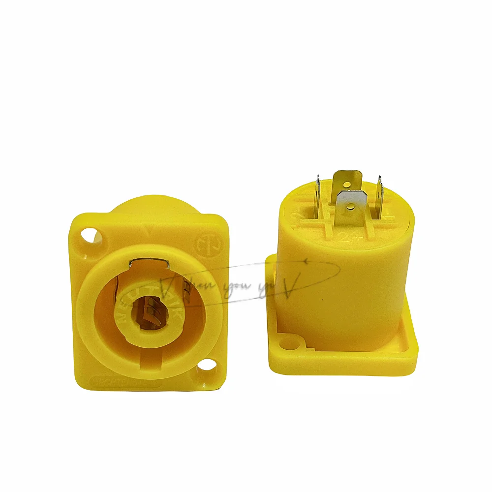 Elevate your audio setup with this set of 20 vibrant, panel-mounted NL4MP four-core D-type audio sockets. Each unit features a durable plastic square base, 4 metal pins (4P), and a central circular socket, available in Black, Blue, Green, Orange, Red, and Yellow to easily distinguish channels. Designed for reliable connection with speakers and amplifiers, these connectors operate at 220V and are crafted without concerning chemicals, ensuring safety and durability. The sleek, geometric design offers both functional practicality and a professional aesthetic, making them ideal for high-quality, organized audio wiring in professional environments.