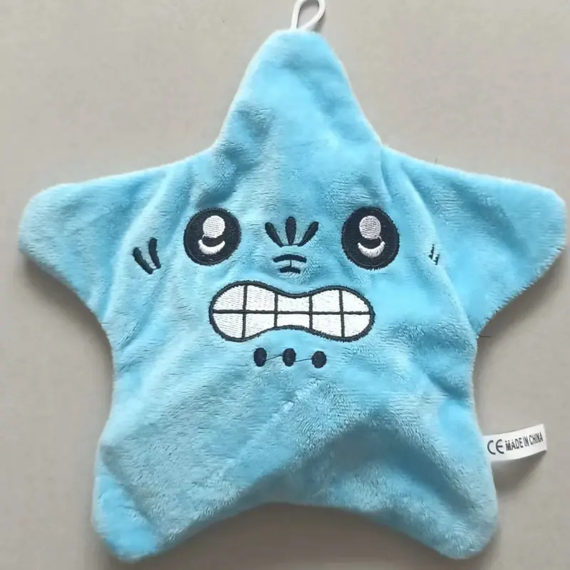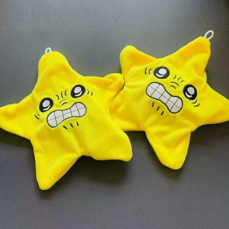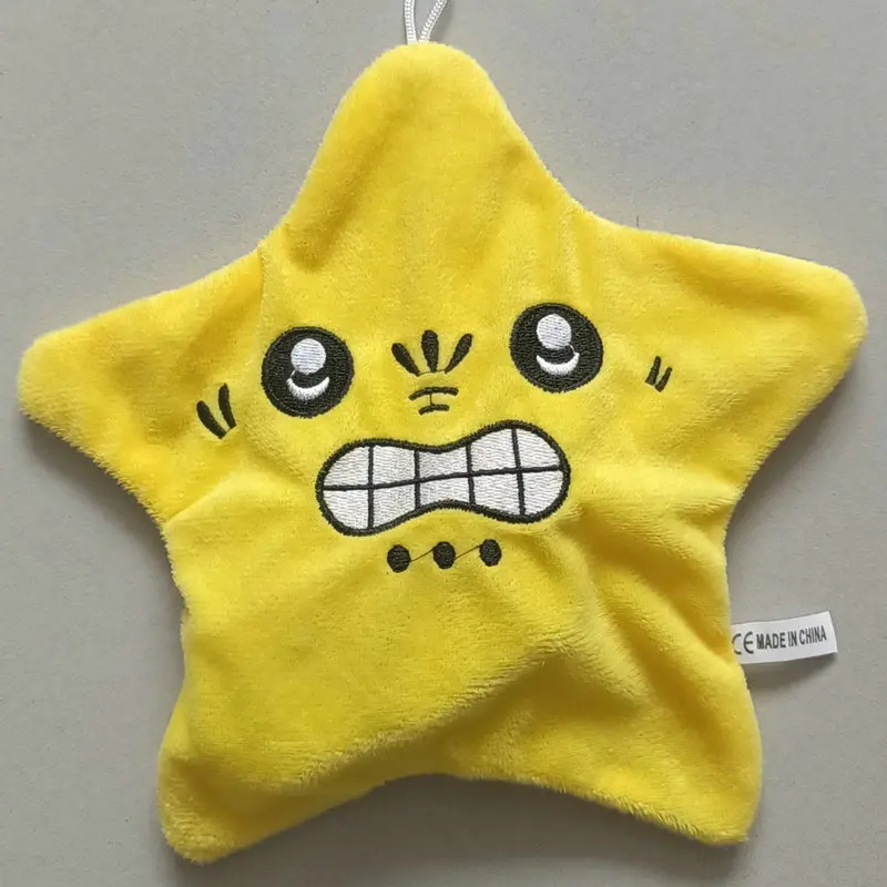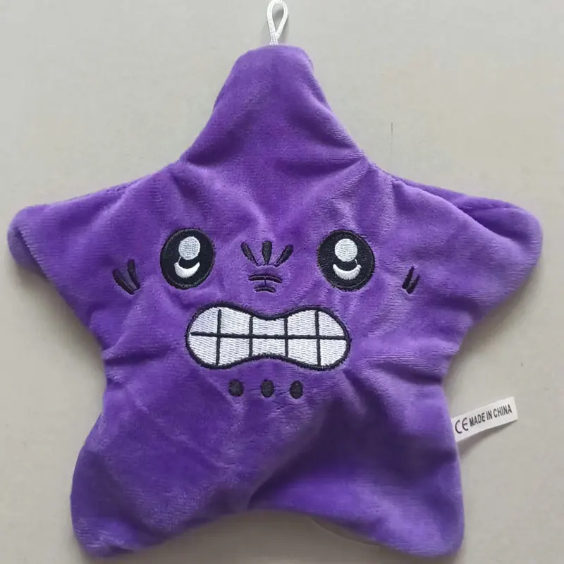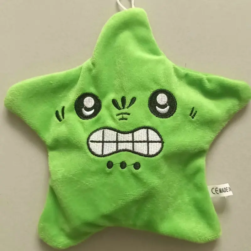 - Designed with rounded, puffed five-pointed shape, the plush provides a playful silhouette similar to a classic emoji star, available in multiple fun colors like red, green, blue, purple, dark pink, and yellow.