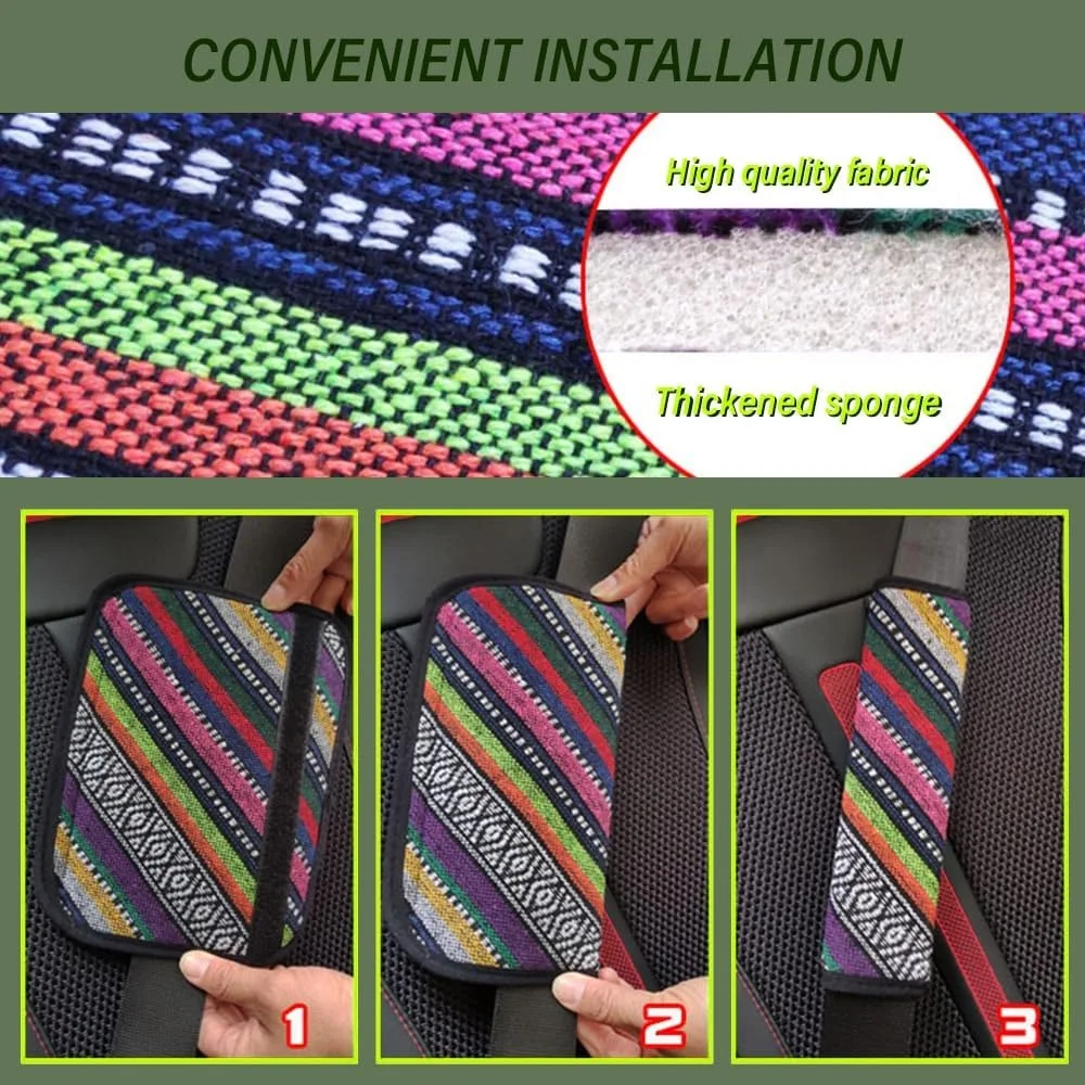 Elevate your travels with this delightful seat belt cover pad set, allowing you to enjoy stylish comfort on the road. Whether you choose the colorful hemp style or one of the other vibrant options, these pads are designed to impress. Don't miss the opportunity to enhance your driving experience and showcase your unique style. Grab your set of seat belt cushion covers now and take your car decor to the next level!